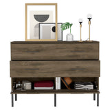 Comoda doble con diseño moderno, una puerta dos cajones, base metalica
