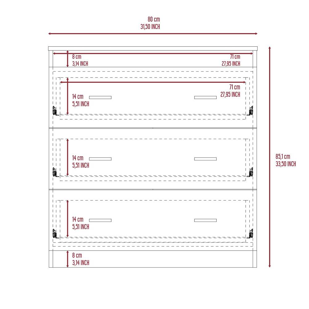 Cómoda Georgia Wengue 80x85.1cm De Tres Hileras con Tres Cajones