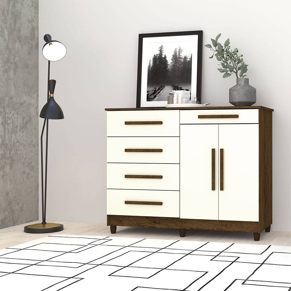 Cómoda Ginesta Marron y Blanco Apagado 122x96.5cm De Cinco Hileras con Cinco Cajones