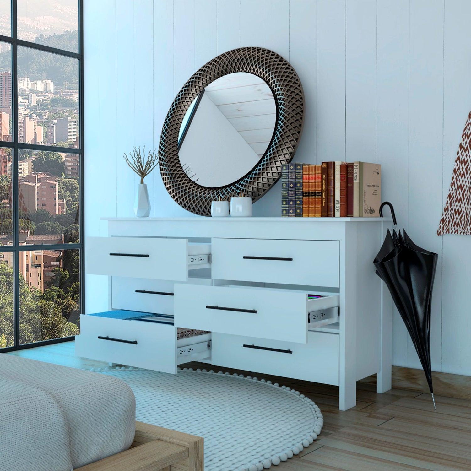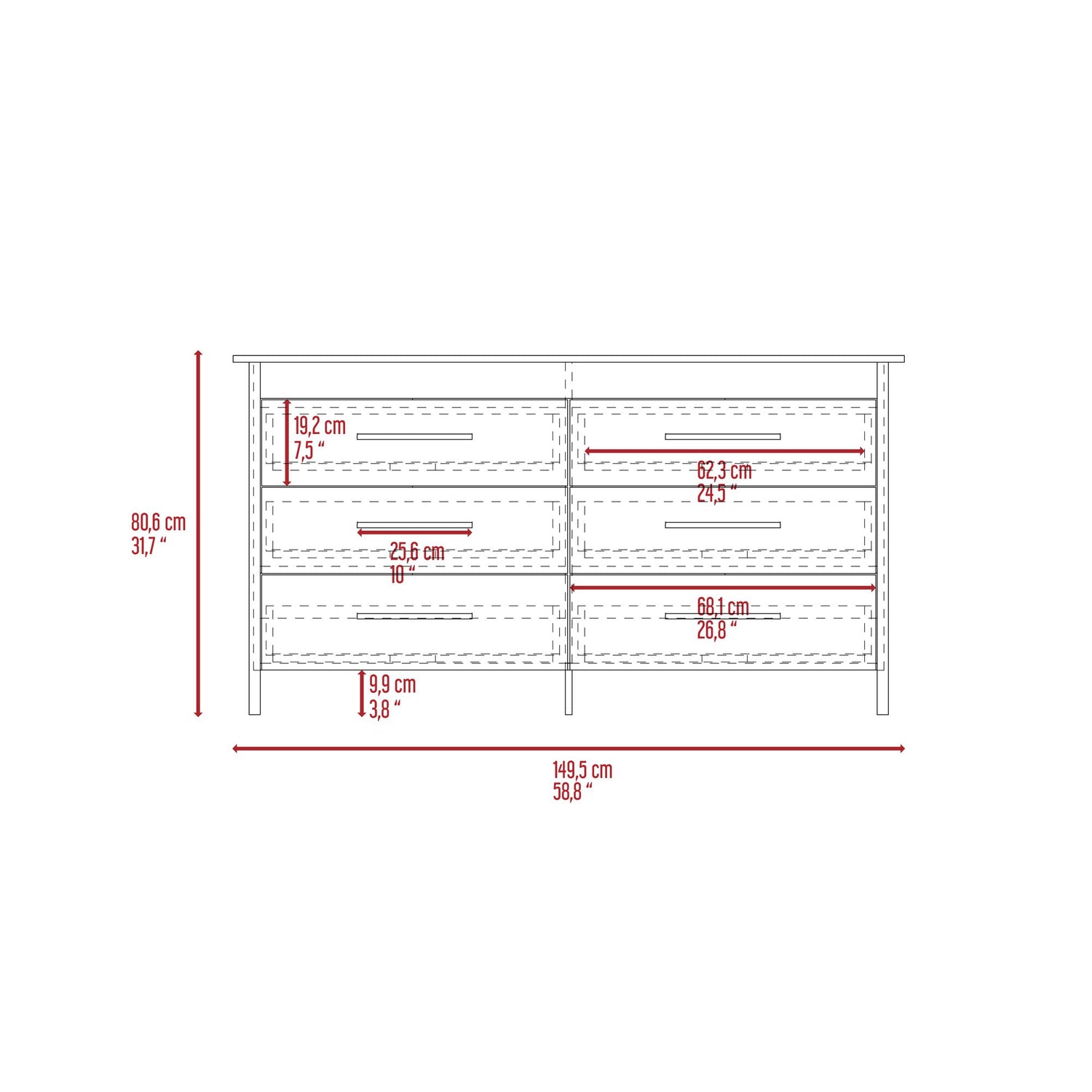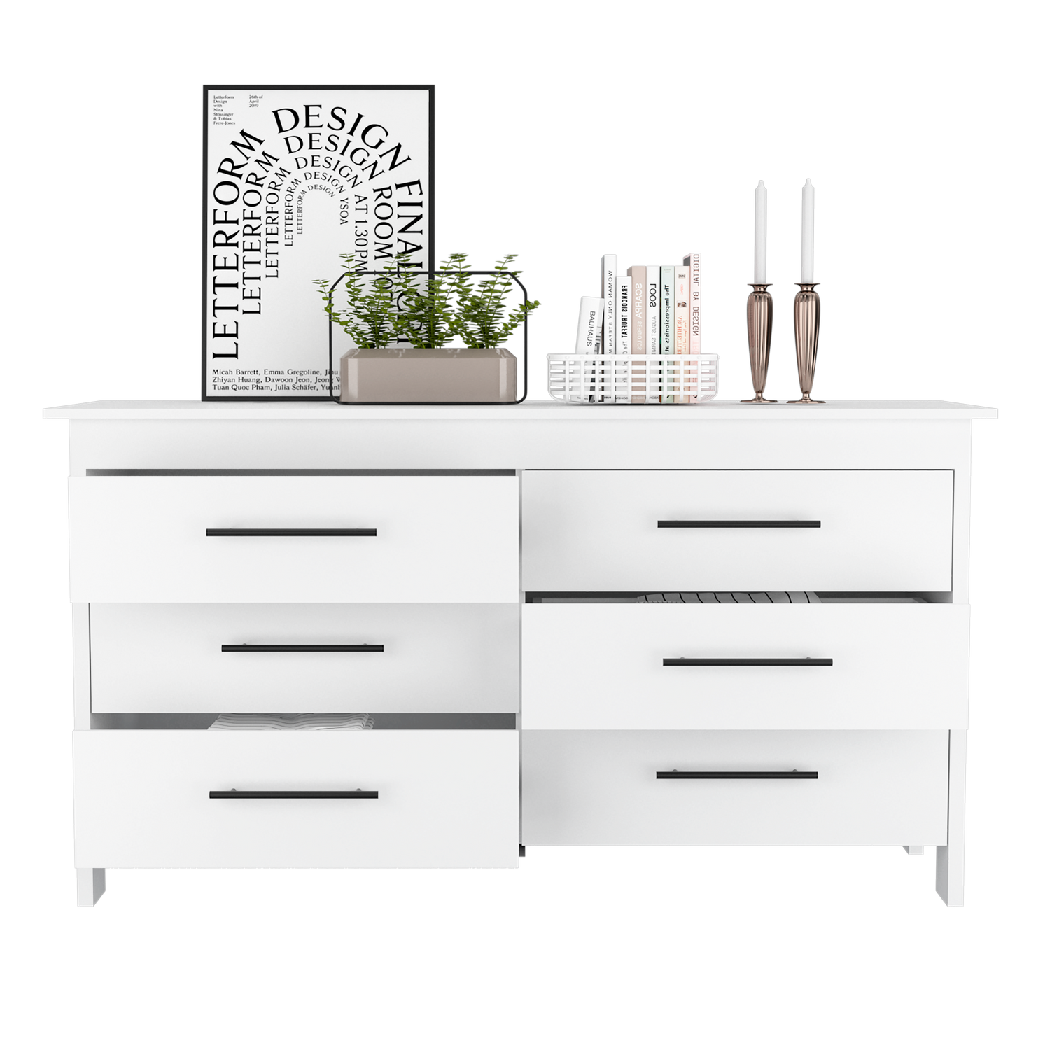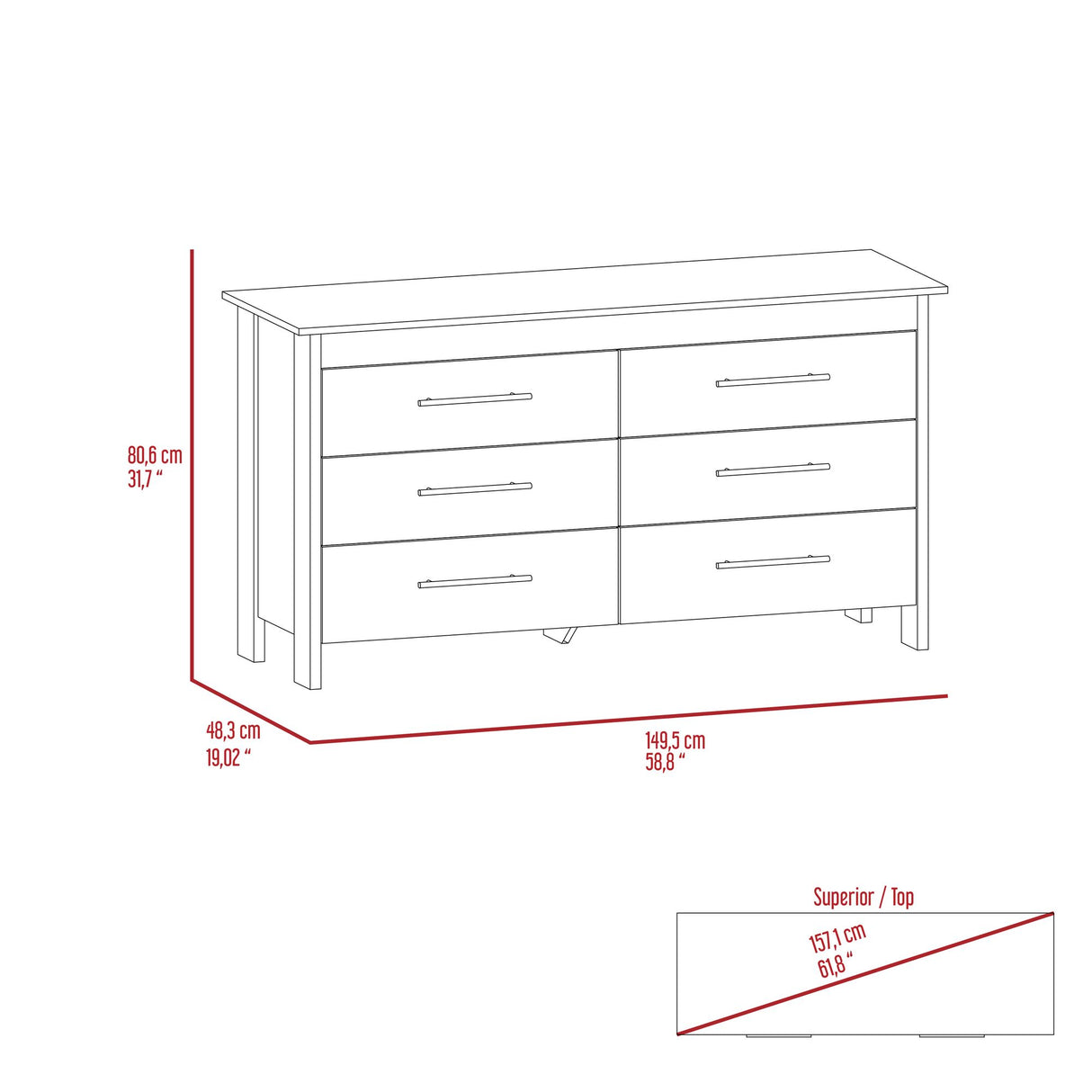 Cómoda HMS Blanco 150x81cm de Tres Hileras con Seis Cajones