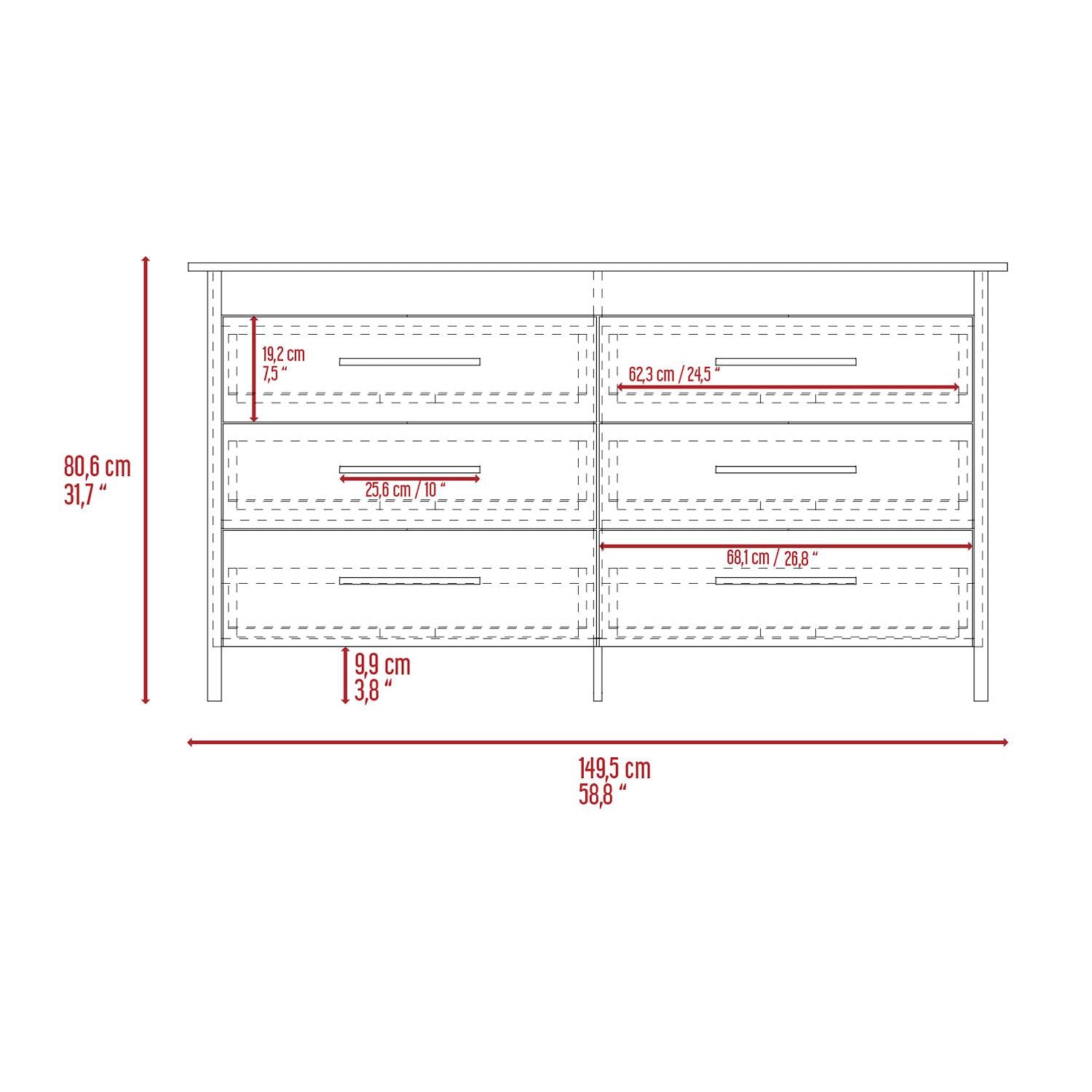 Cómoda HMS Ceniza 149.5x80.6cm De Tres Hileras con Tres Cajones