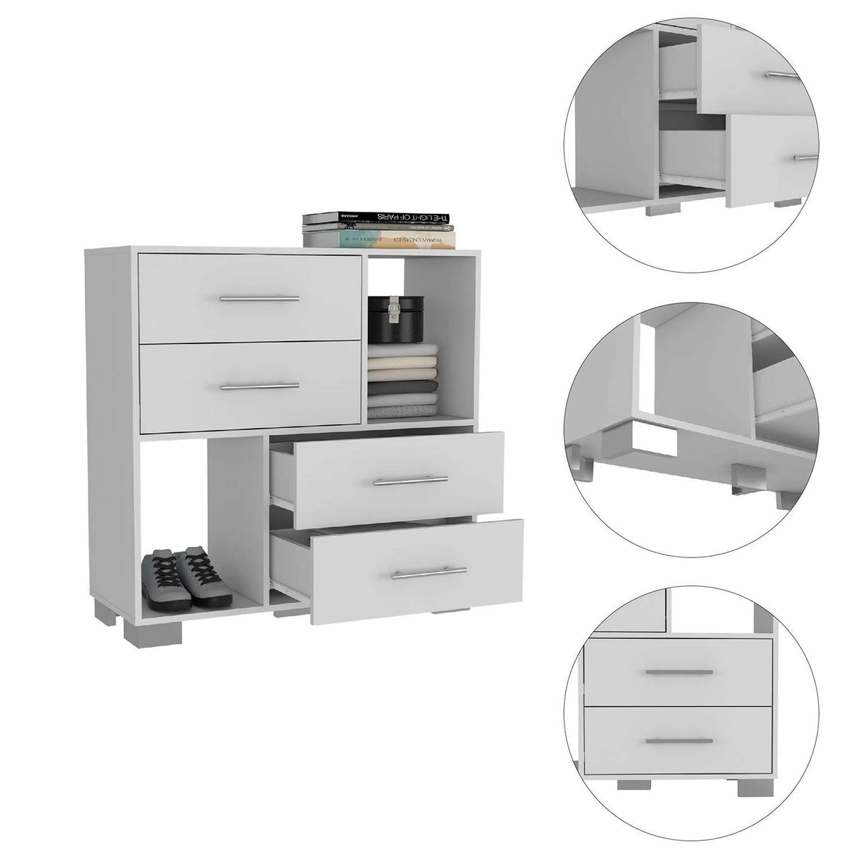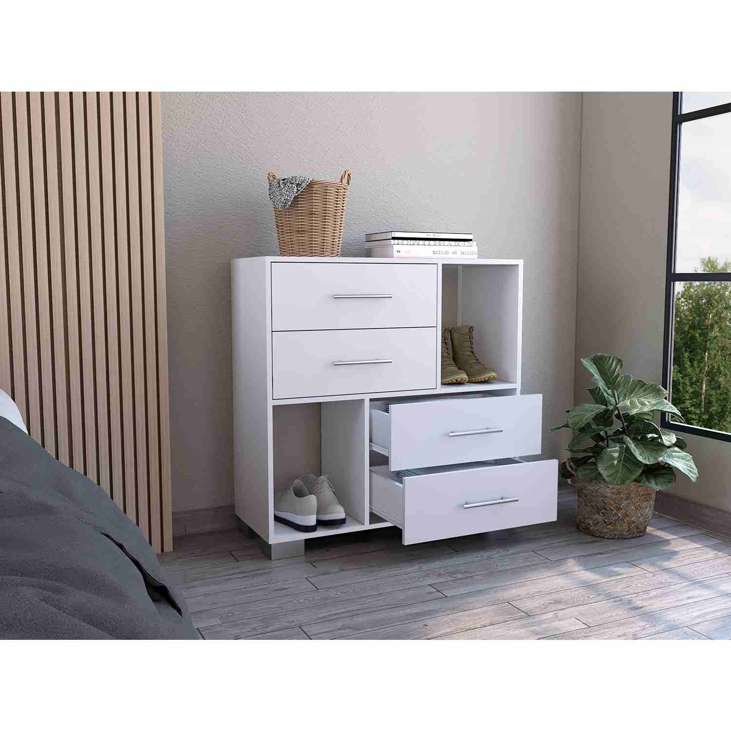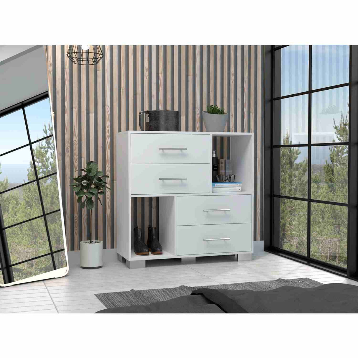 Cómoda Krista Blanco 90x90cm De Cuatro Hileras con Cuatro Cajones