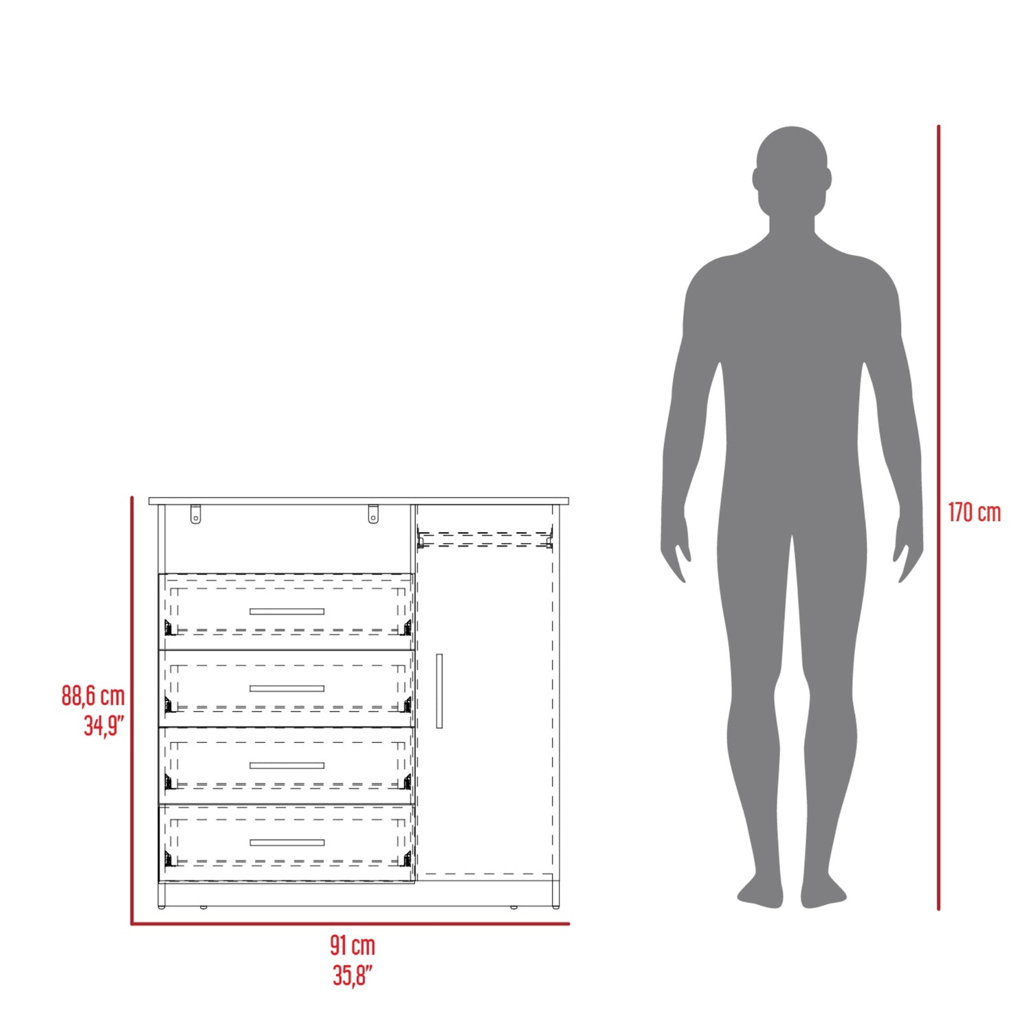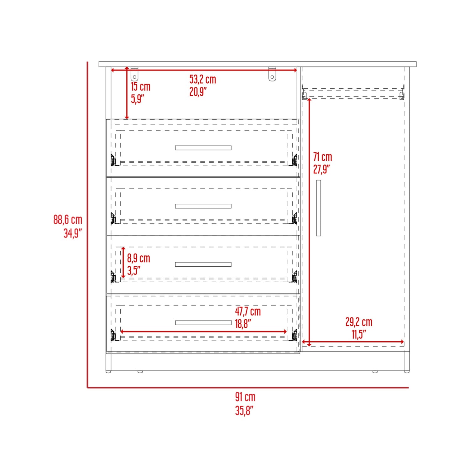 🚚 Envío GRATIS - Ver Cobertura aquíCómoda Peru Blanco 91x88.6cm con Cuatro Cajones está agotado y se enviará tan pronto como vuelva a estar disponible.