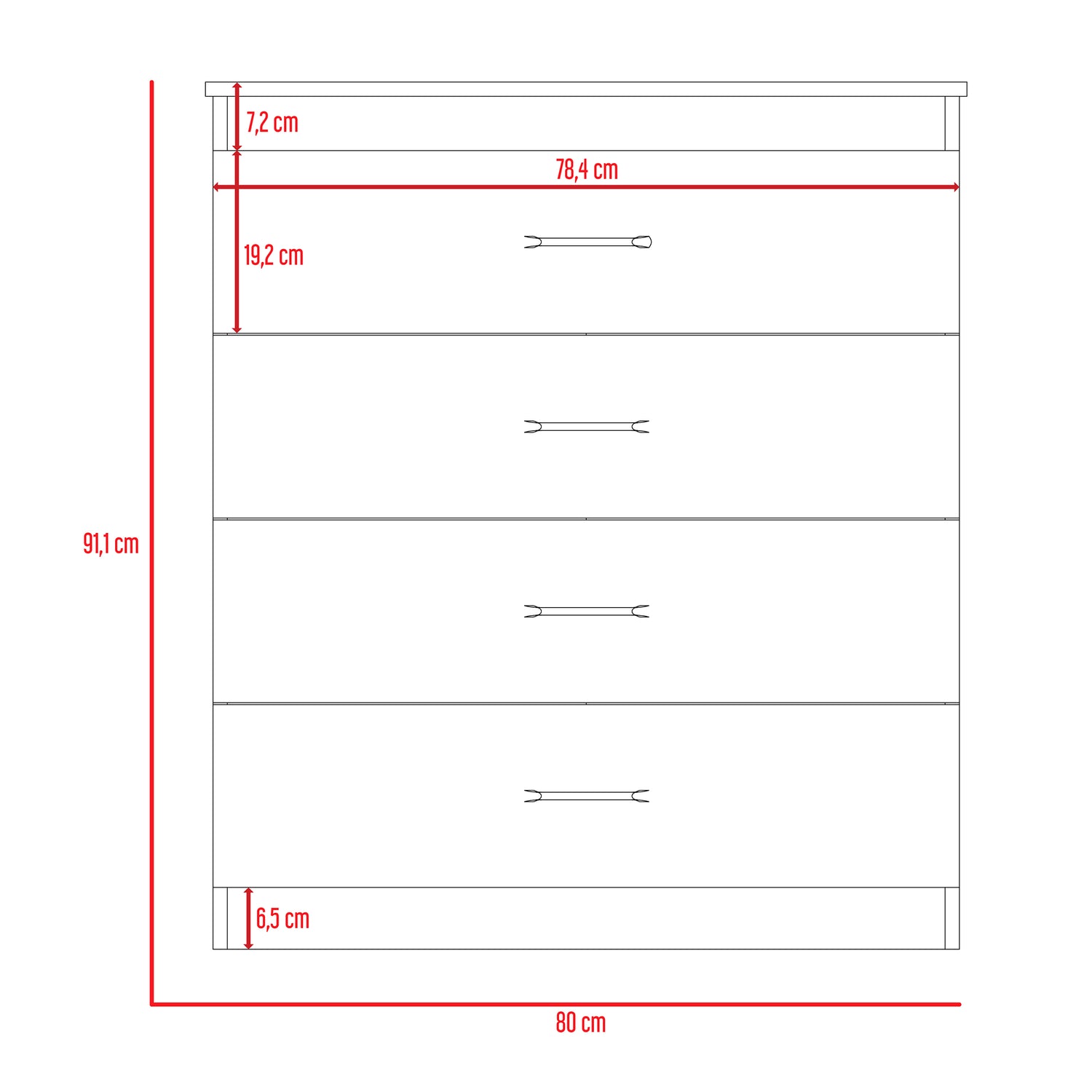 Cómoda Santino Rovere y Blanco 80x91.1cm De Cuatro Hileras con Cuatro Cajones