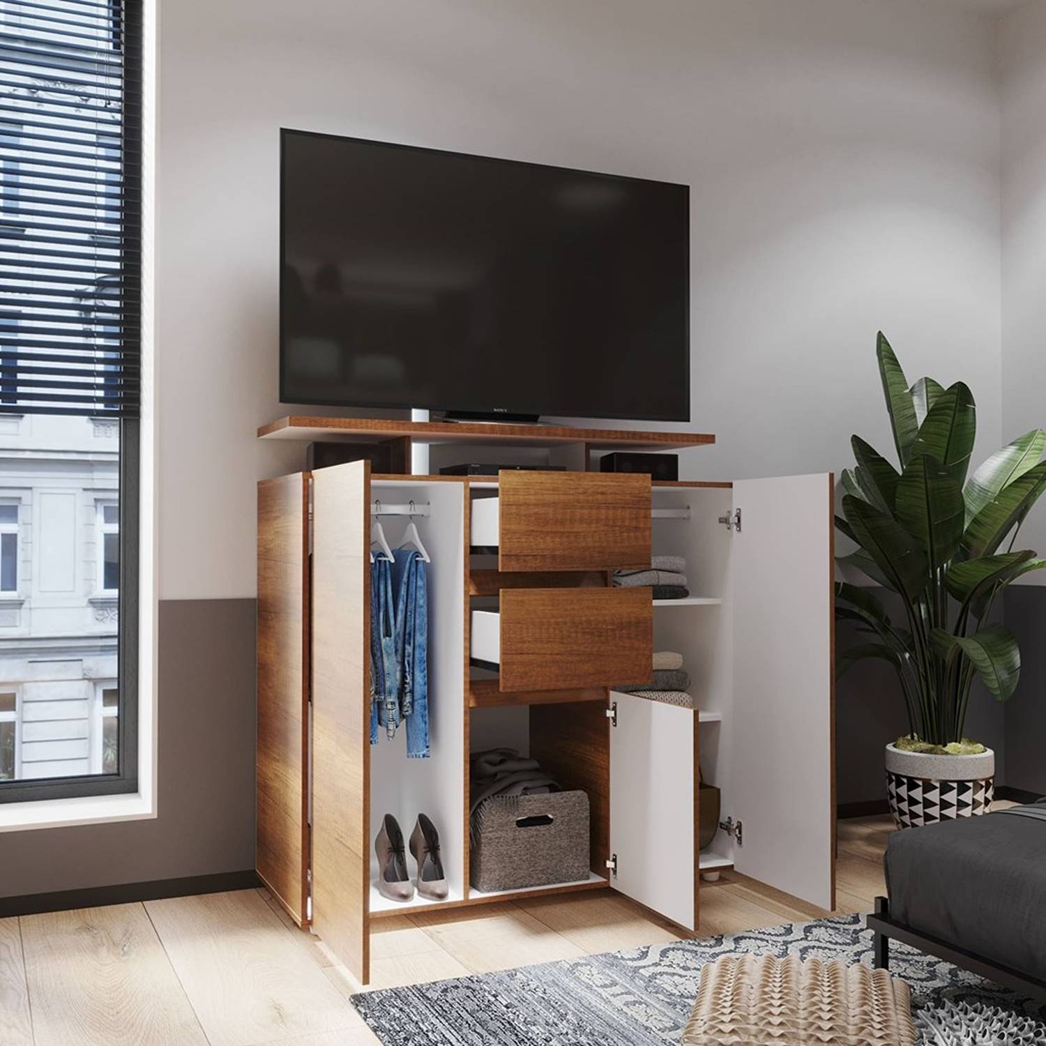 Cómoda Saur Caramelo 120 cm con Tres Puertas y Dos Cajones