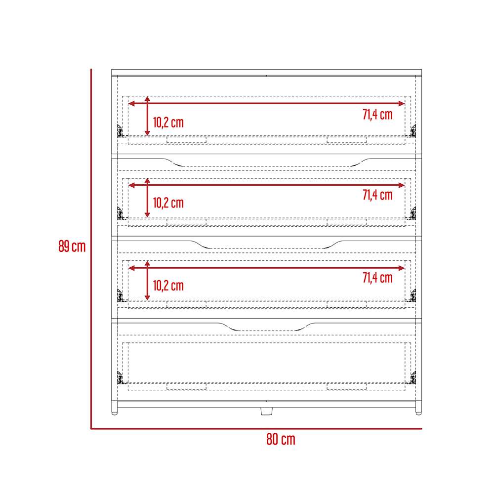 Cómoda Zoe Rovere y Blanco 80x89cm De Cuatro Hileras con Cuatro Cajones