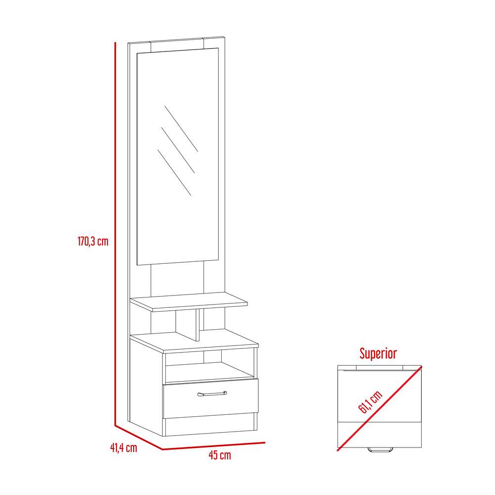 Cómoda Fiorenza Wengue 45 cm con Espejo y Un Cajón