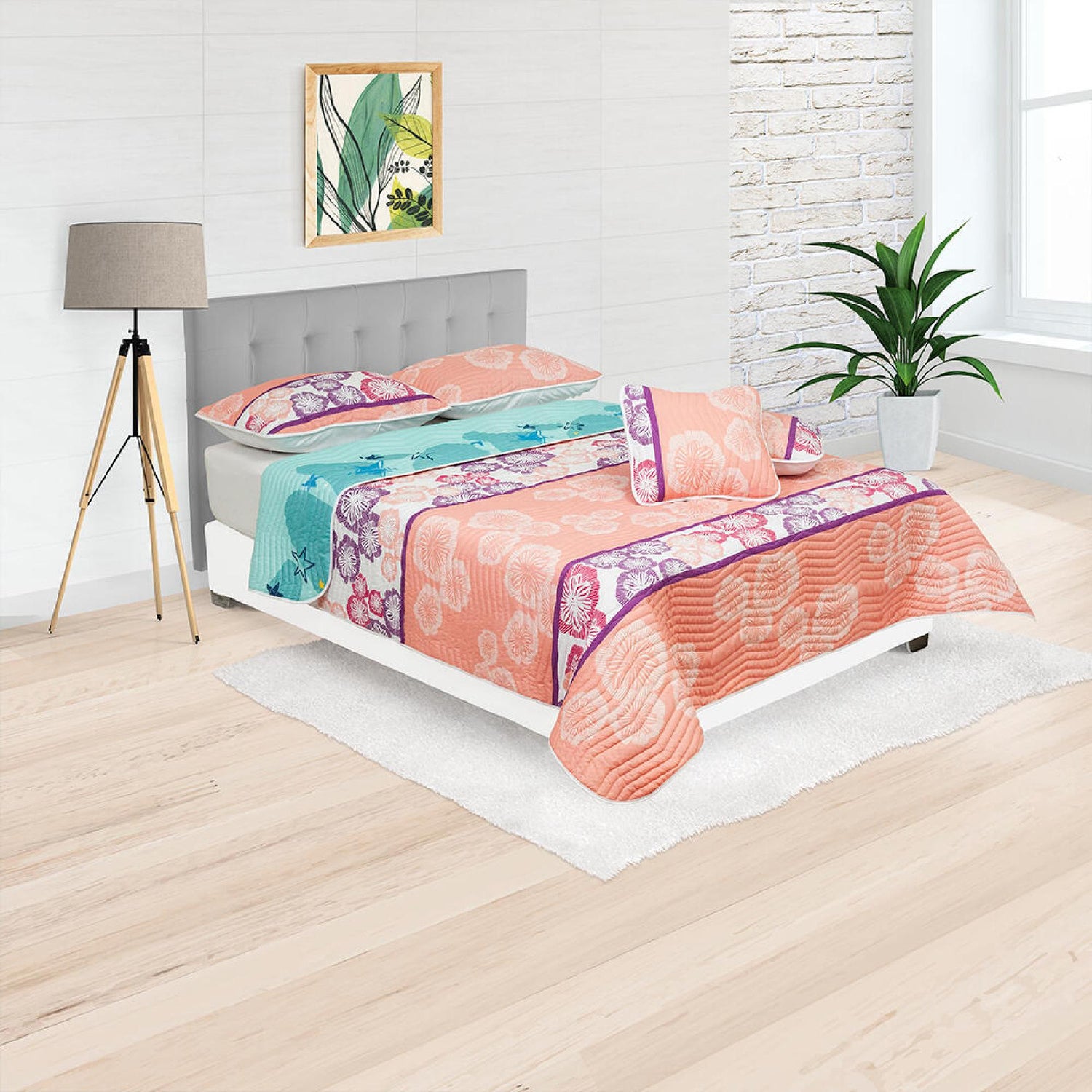 Cubrelecho Español Ambete Rosado y Lila de Algas Marinas Para Cama Semidoble 120 X 190 Cm