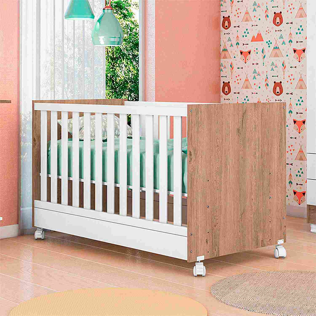 Transforma la habitación de tu bebé en un espacio moderno y funcional con la cuna Natal en color blanco y miel. Su diseño versátil se adapta a cualquier estilo de decoración y cuenta con cuatro ruedas para facilitar su movilidad. Además, sus barandales gruesos brindan mayor seguridad para tu pequeño. Fabricada con aglomerado de madera y pintura UV, esta cuna es resistente y duradera. Incluye manual de armado y herrajes para un ensamble sencillo. ¡Haz de la habitación de tu bebé un lugar acogedor y seguro con la cuna Natal!