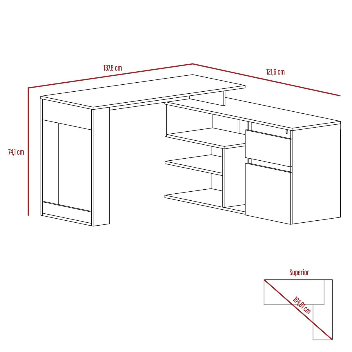 🚚 Envío GRATIS - Ver Cobertura aquíEscritorio en L Alteza Duna 121.5x73.5cm Con Un Cajón y con Organizador de Libros está agotado y se enviará tan pronto como vuelva a estar disponible.