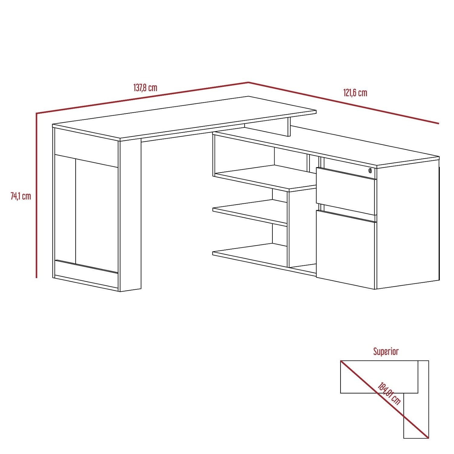 Escritorio en L Alteza Duna 121.5x73.5cm Con Un Cajón y con Organizador de Libros