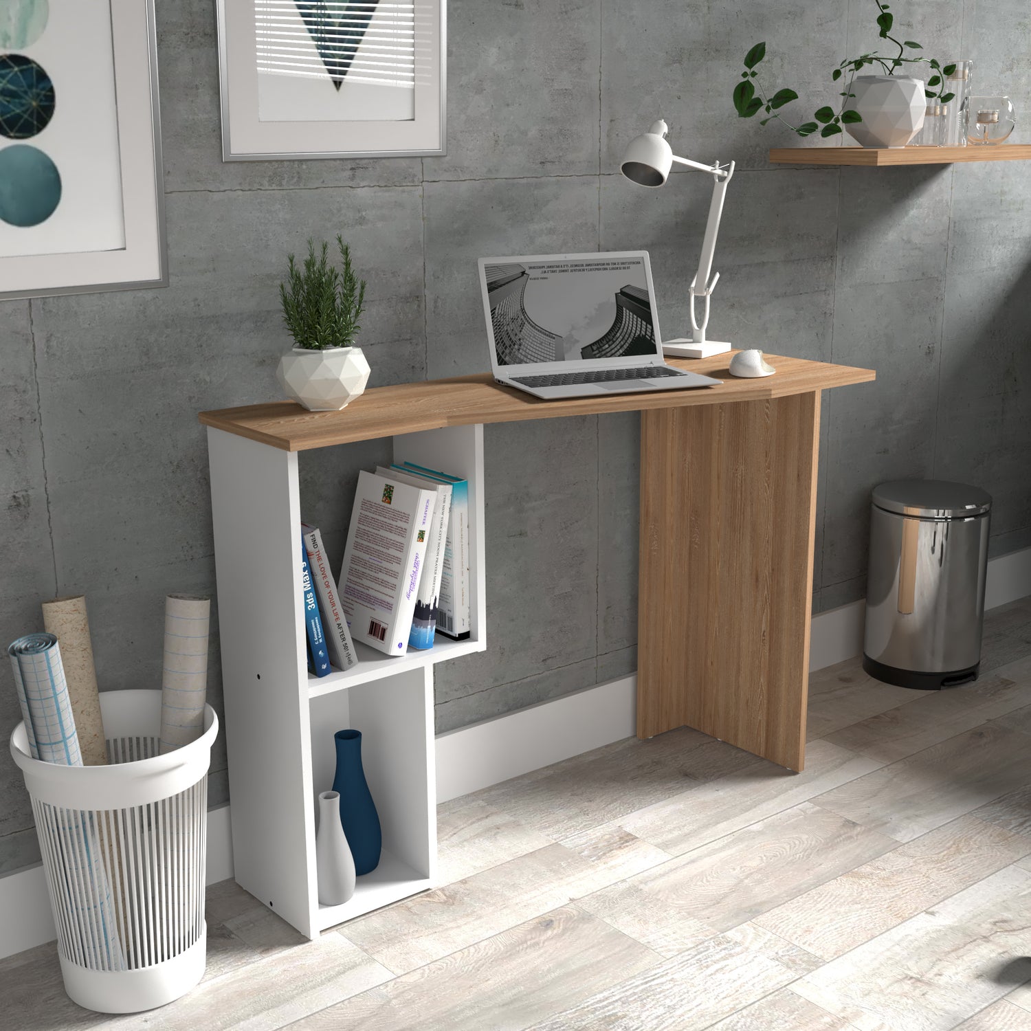 Escritorio Amaretto y Blanco 100x74cm con Organizador de Libros