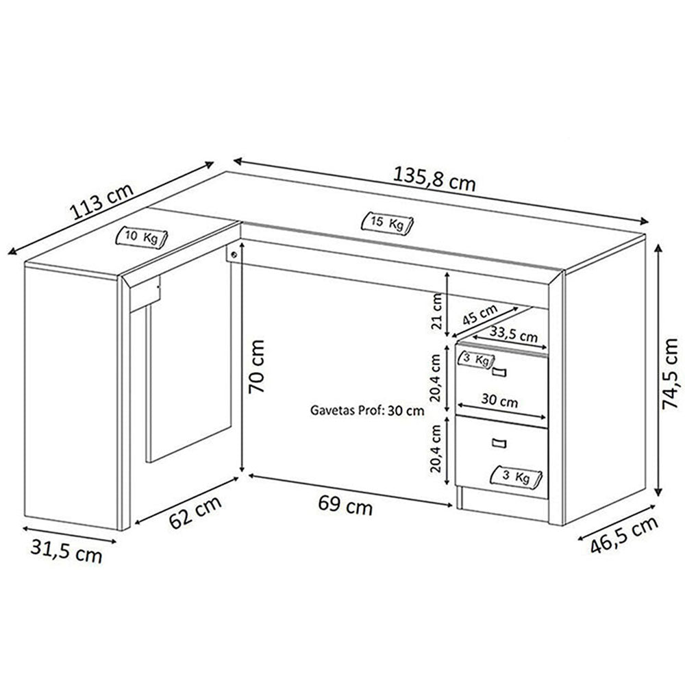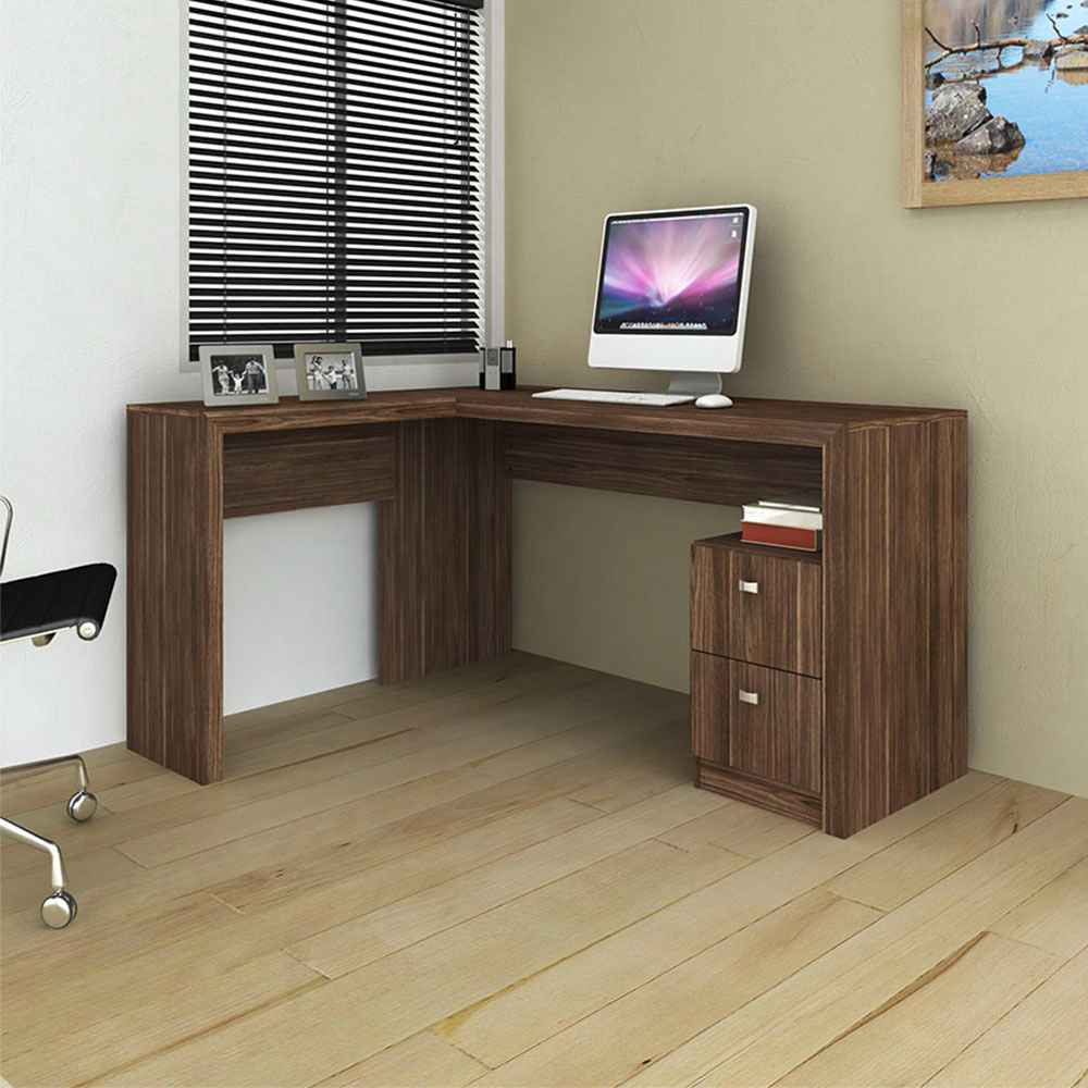 Escritorio en L Athenas Nogal 135 cm con Cajones