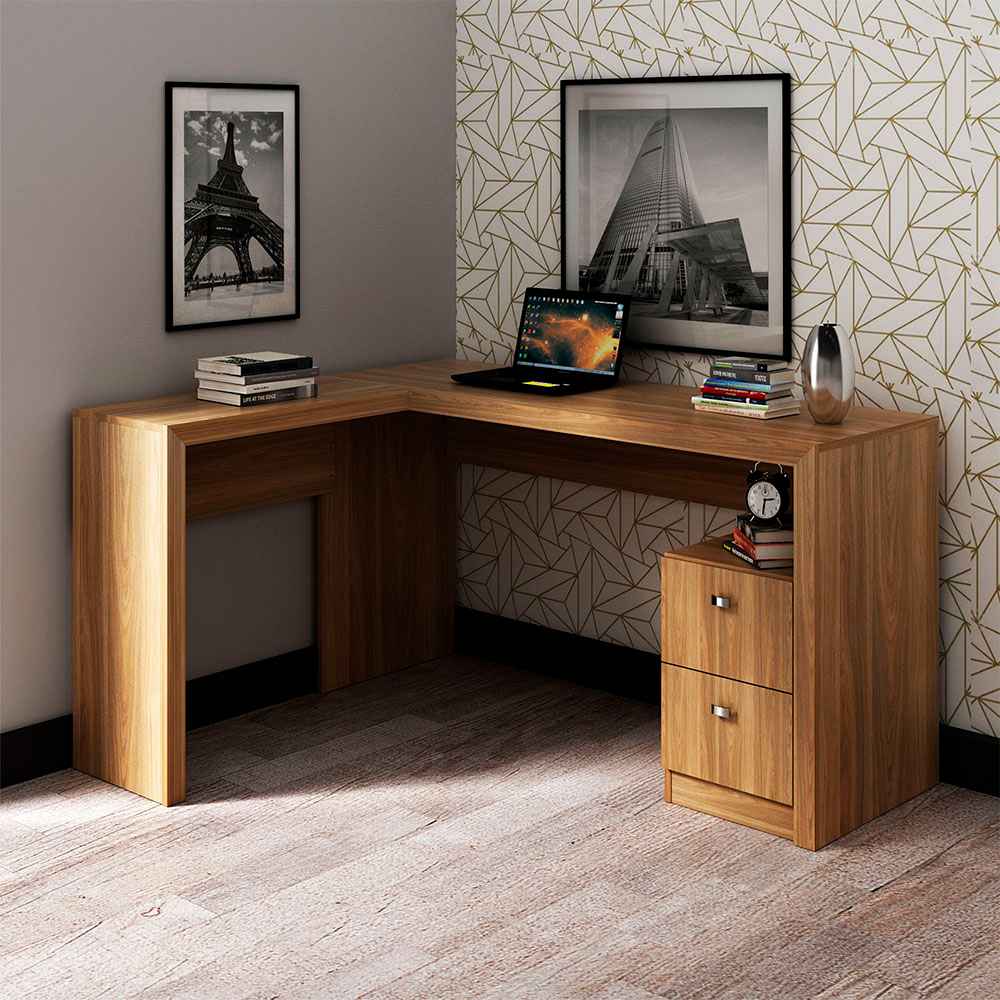 Escritorio en L Athenas Teca 135 cm con Cajones