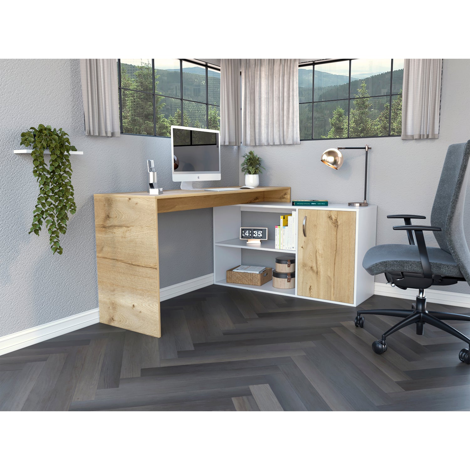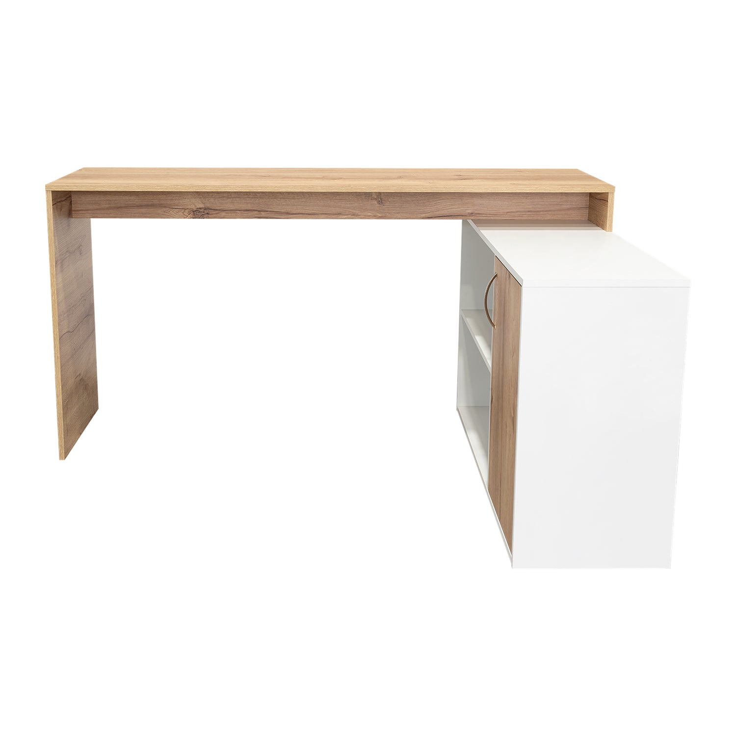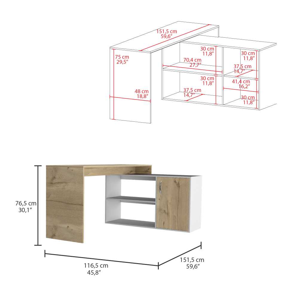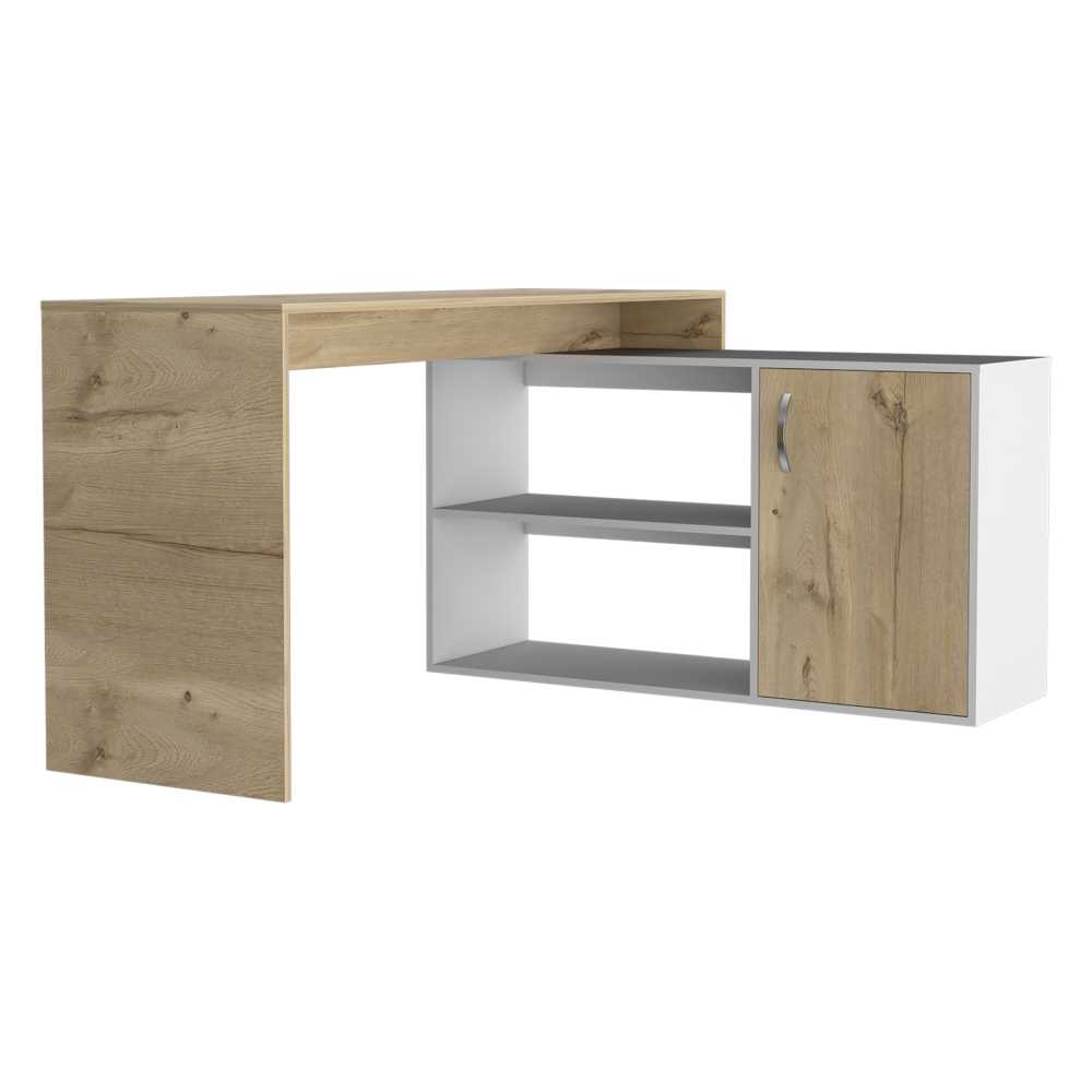 Escritorio en L Axis Duna y Blanco 151.5x76.5cm sin Cajones y con Organizador de Libros