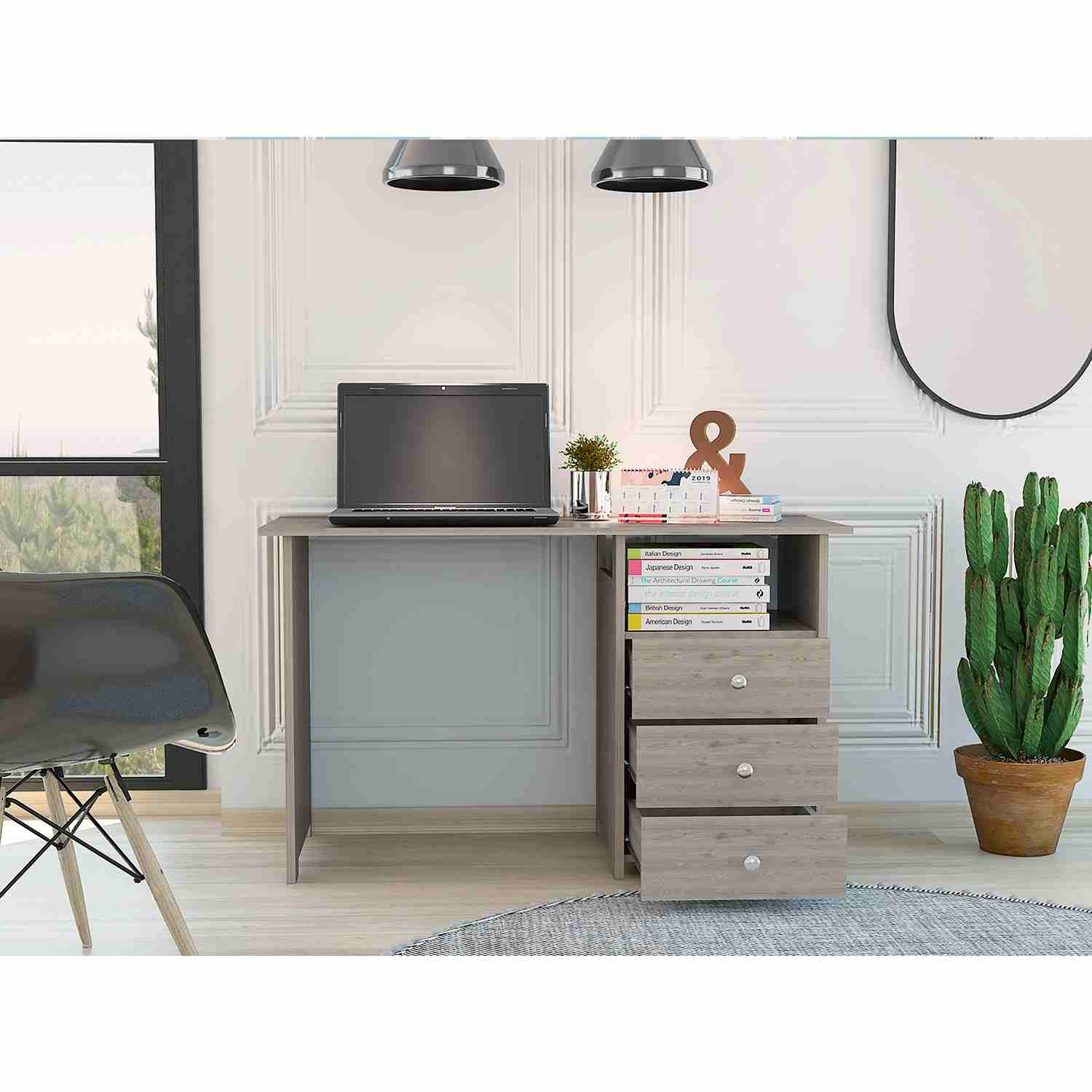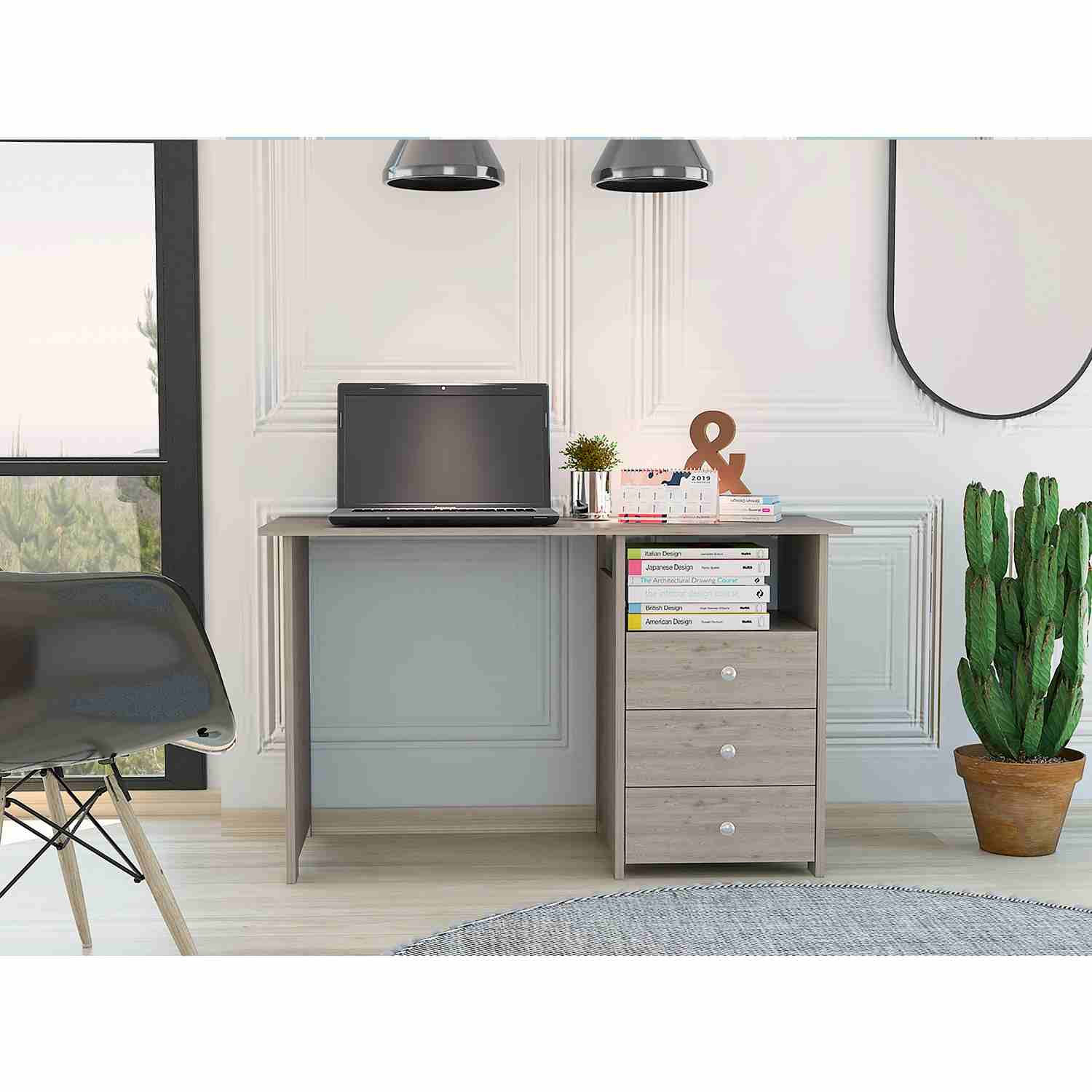 Escritorio Bianco Ceniza 120x75cm Con Tres Cajones