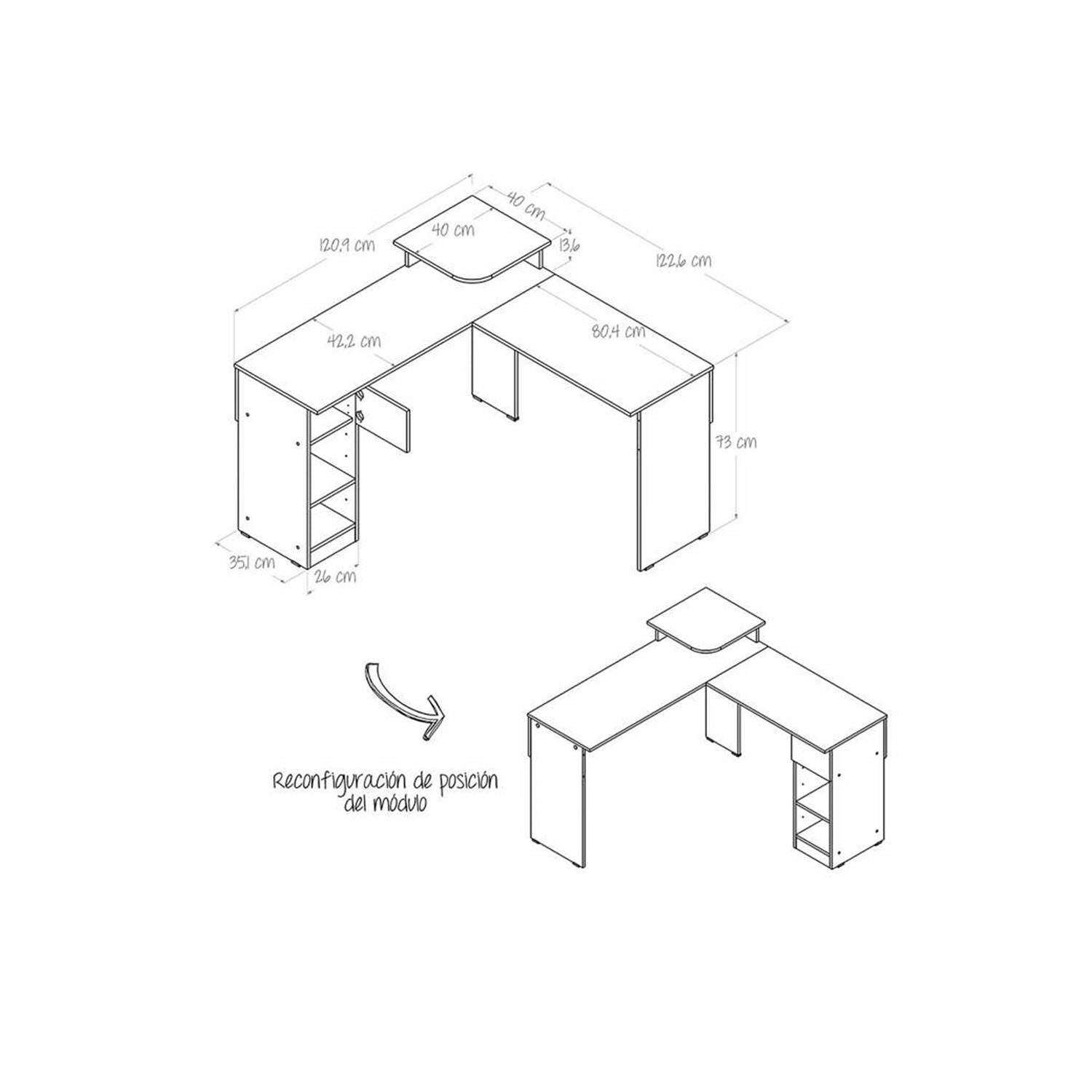 • Ideal para trabajar o estudiar con su estructura en forma de L.