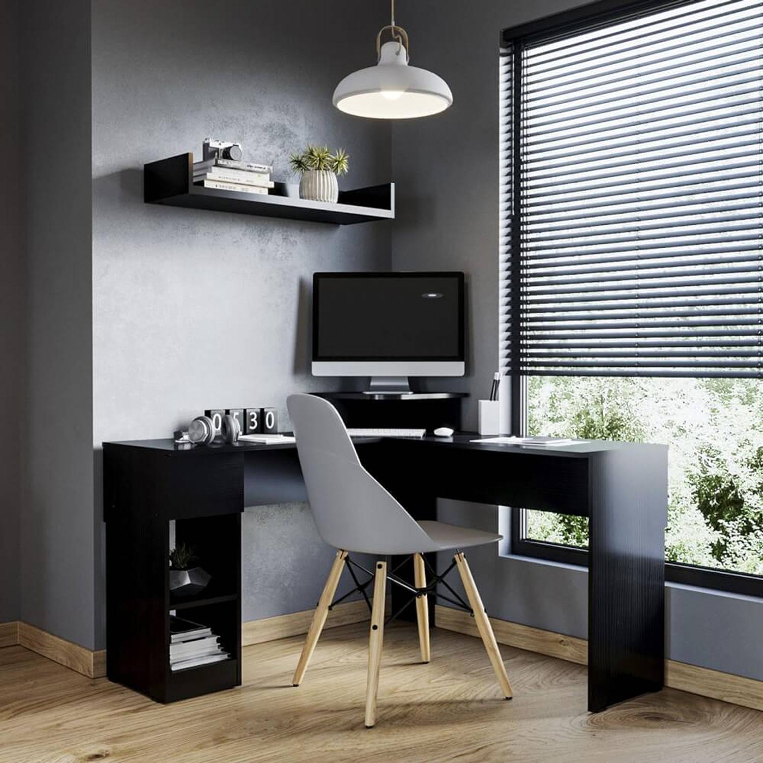 Escritorio en L Veneza Wengue 120.9x86.6cm Con Un Cajón y con Organizador de Libros