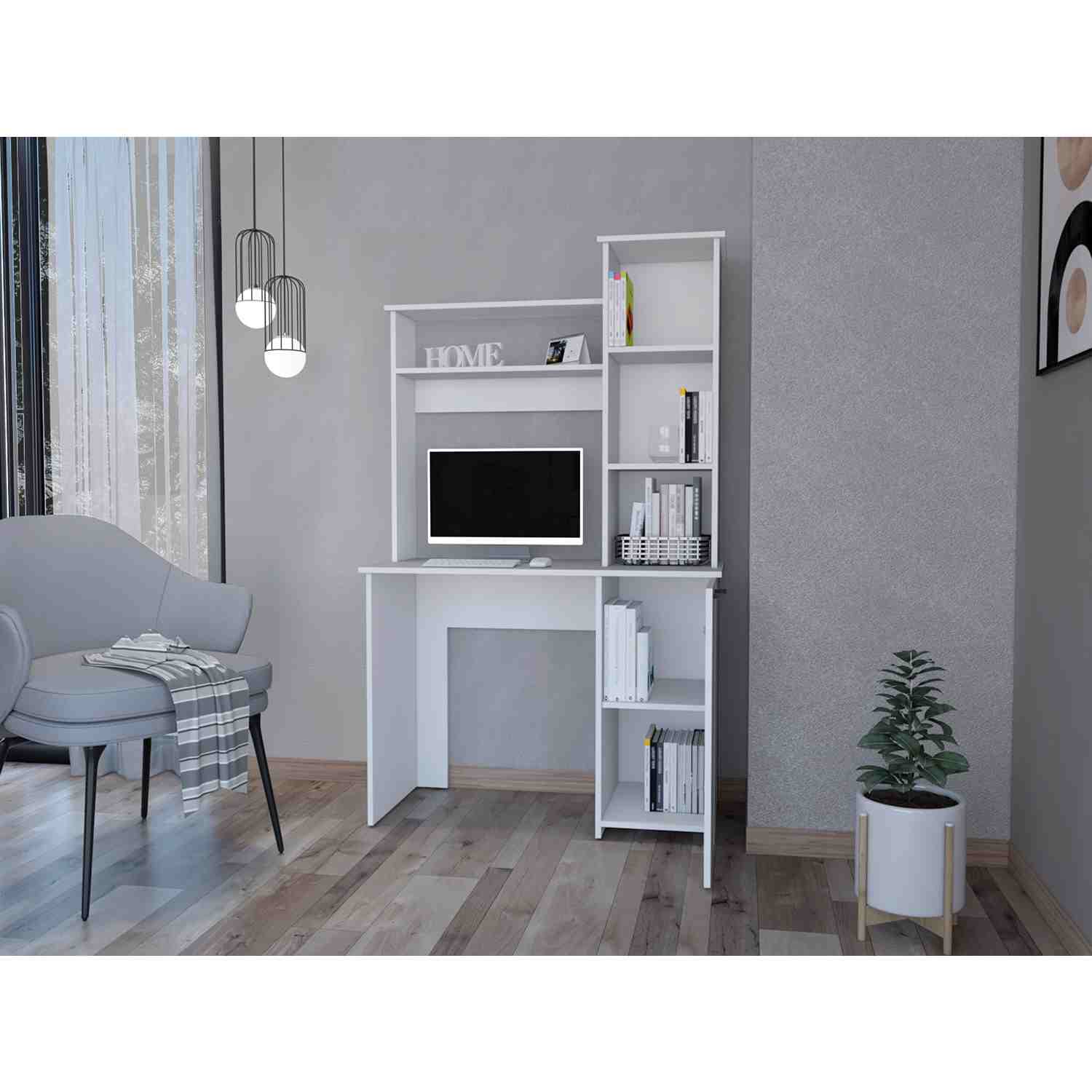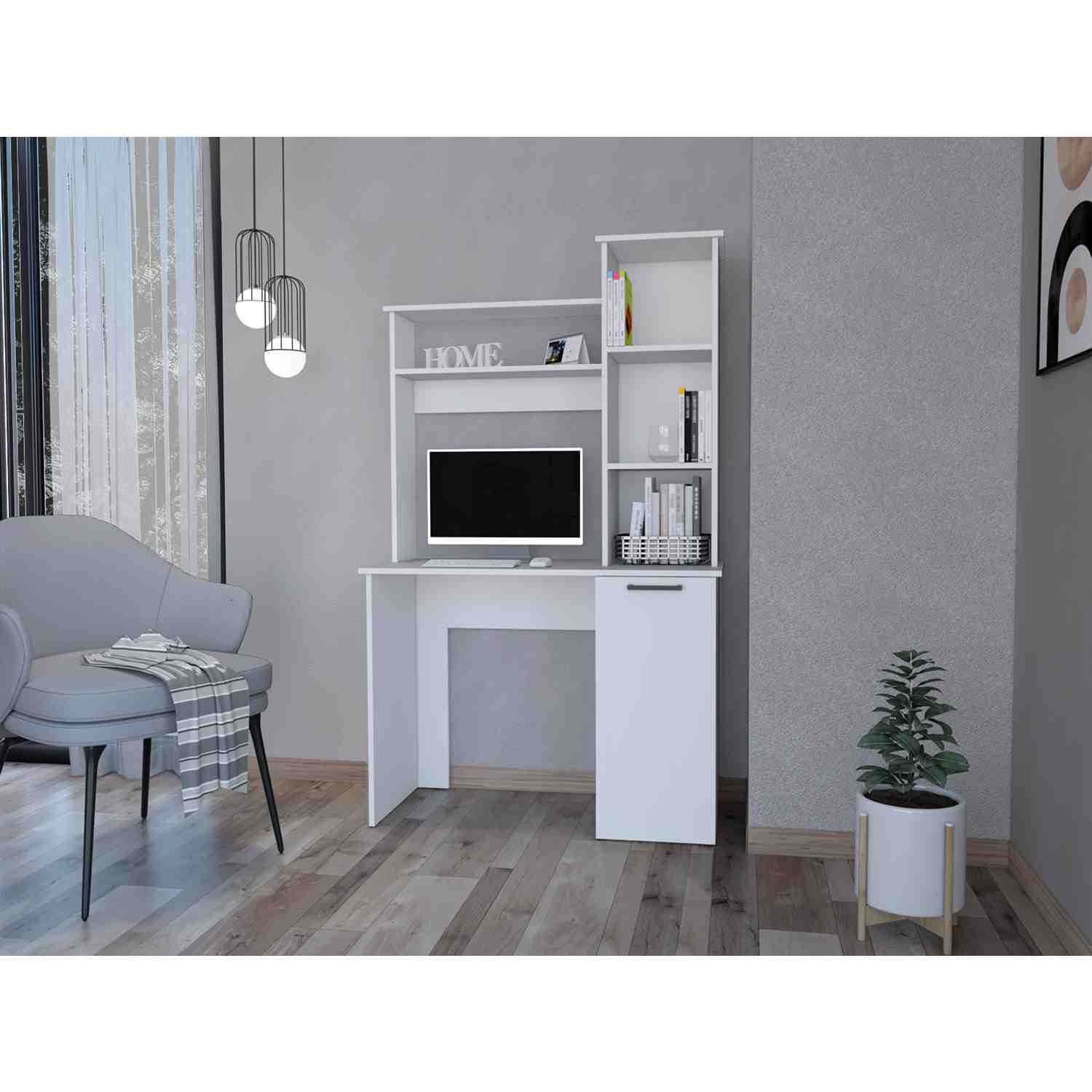 Escritorio Carson Blanco 99 cm con Biblioteca y una Puerta