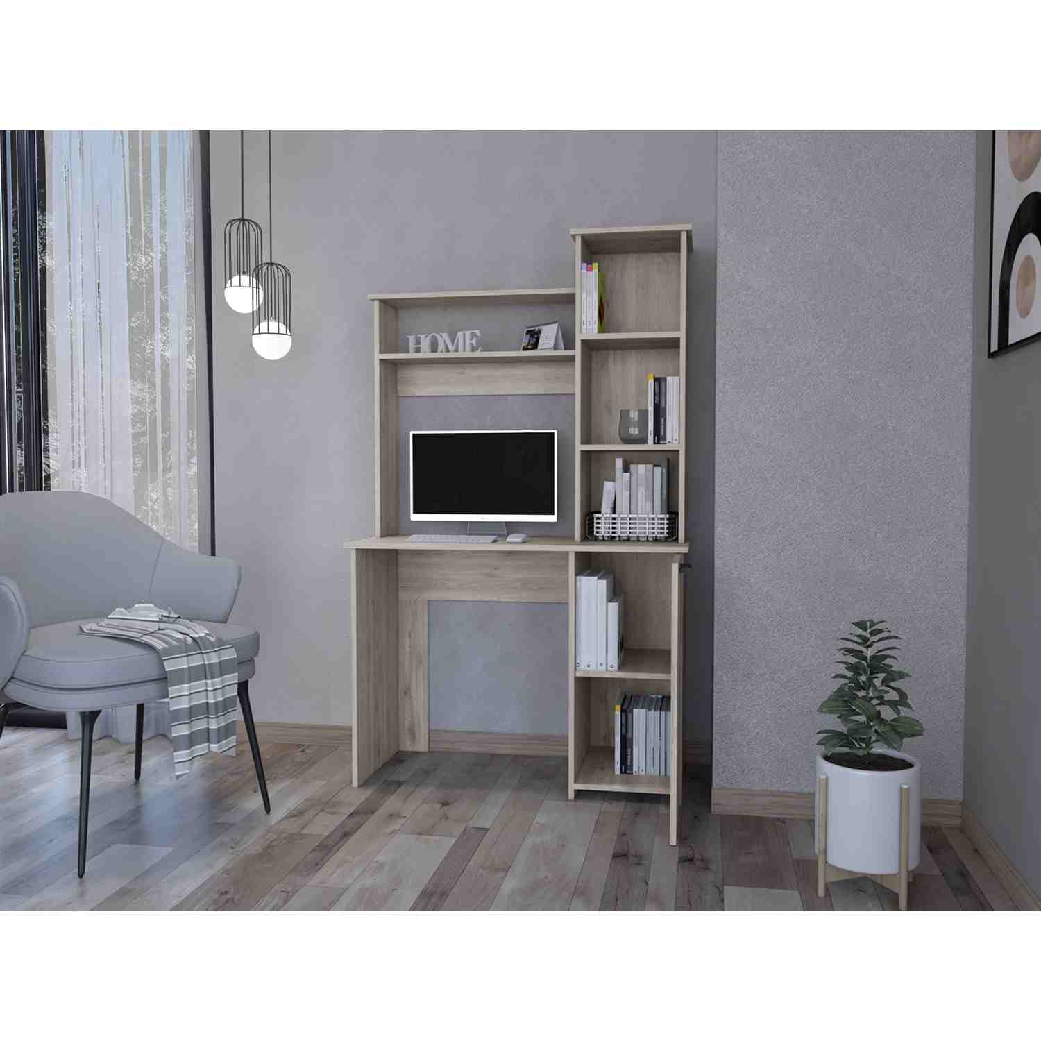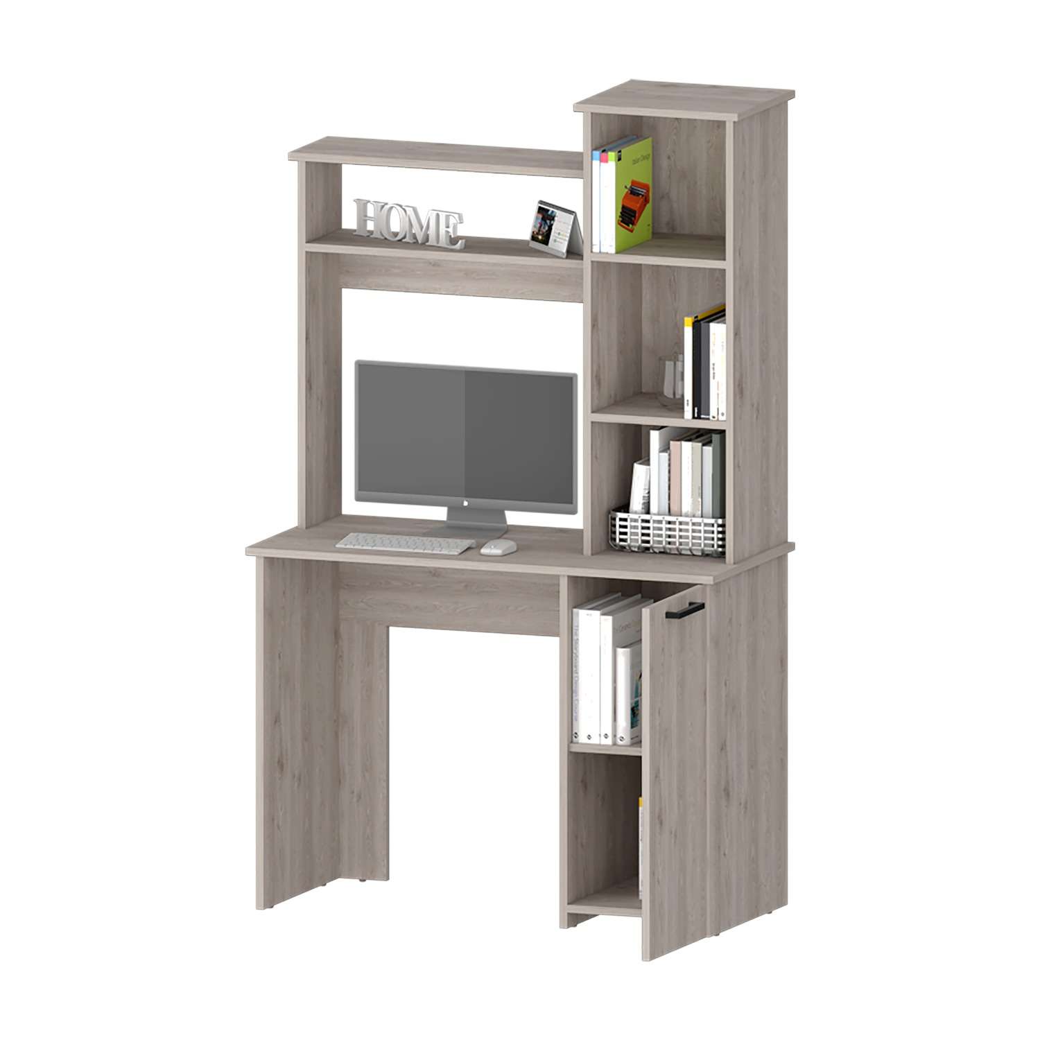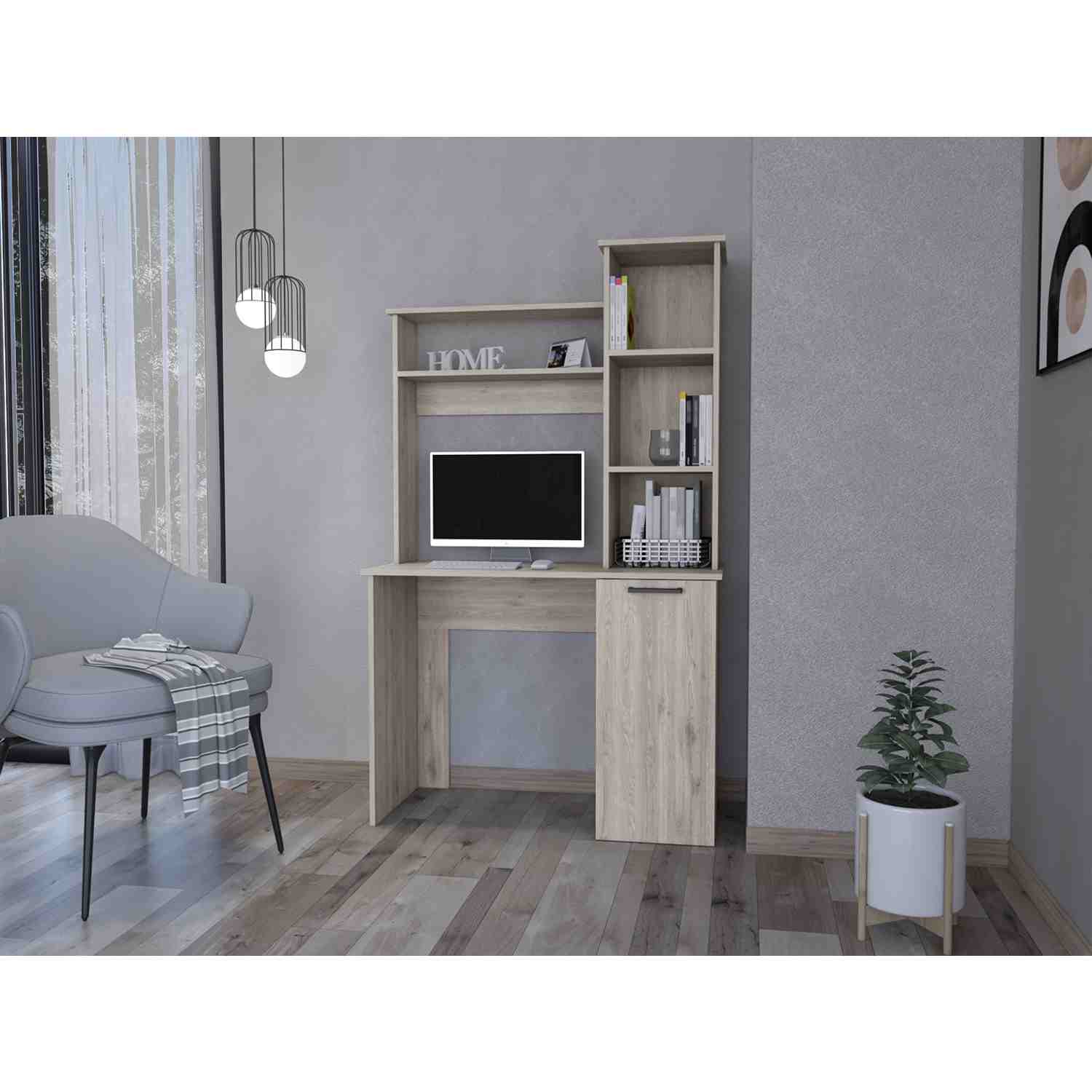 Escritorio Carson Ceniza 99 cm con Biblioteca y una Puerta
