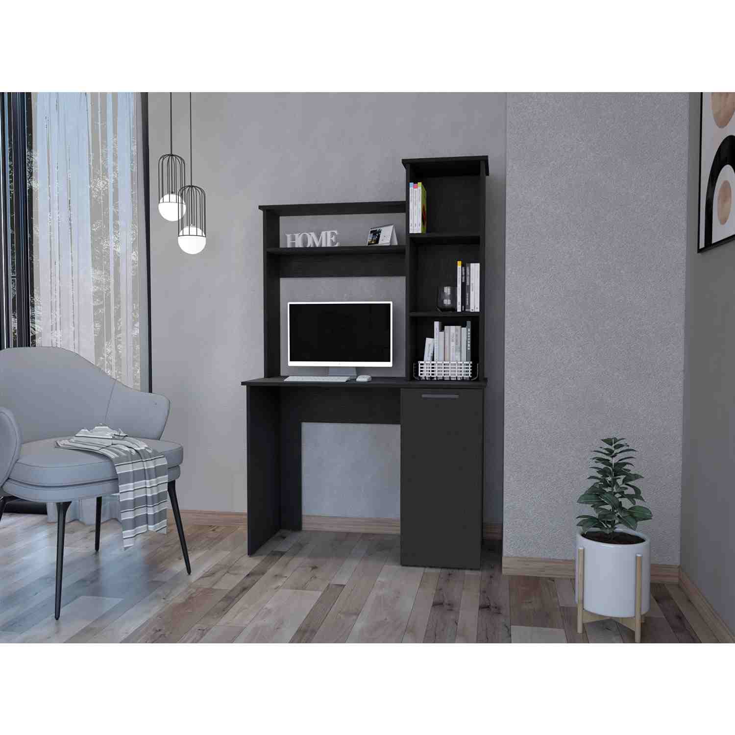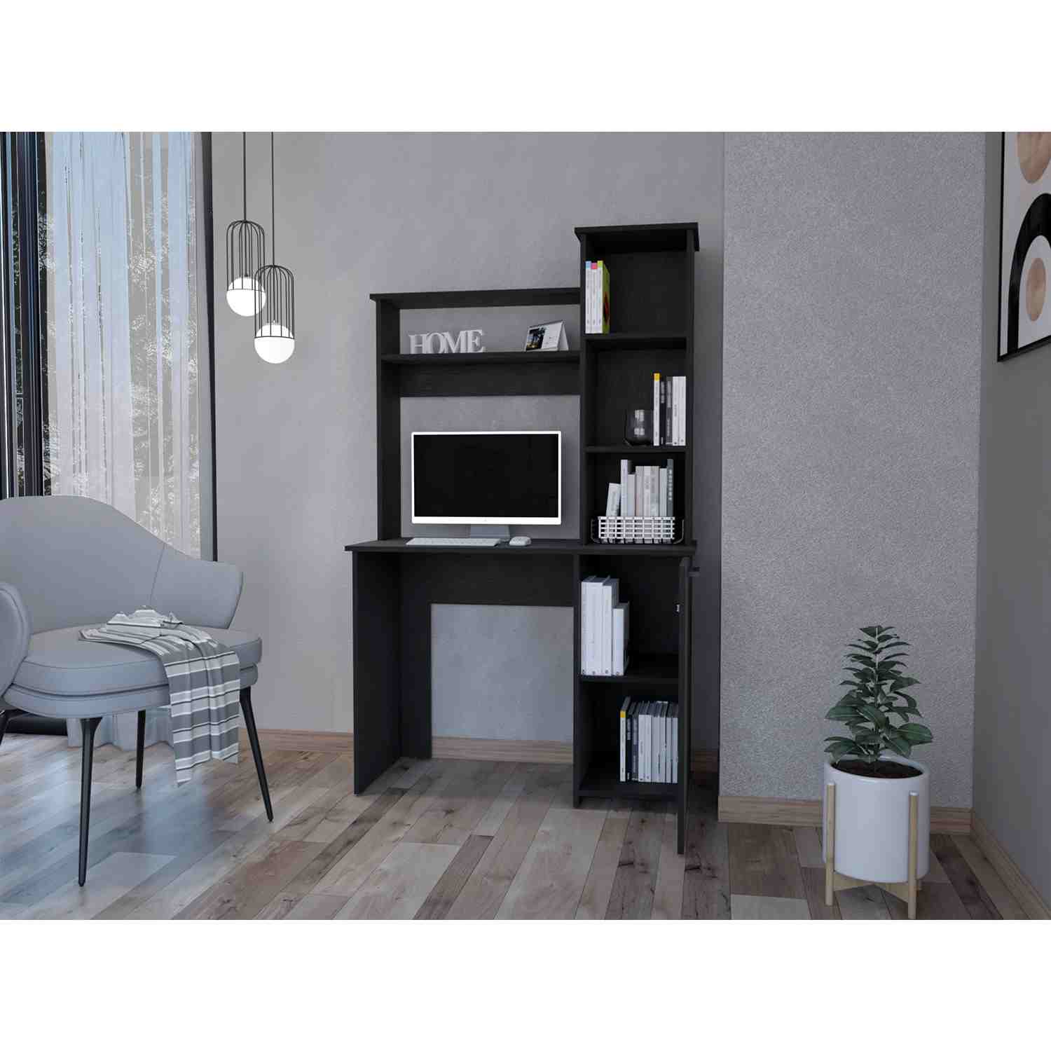 Escritorio Carson Wengue 99 cm con Biblioteca y una Puerta