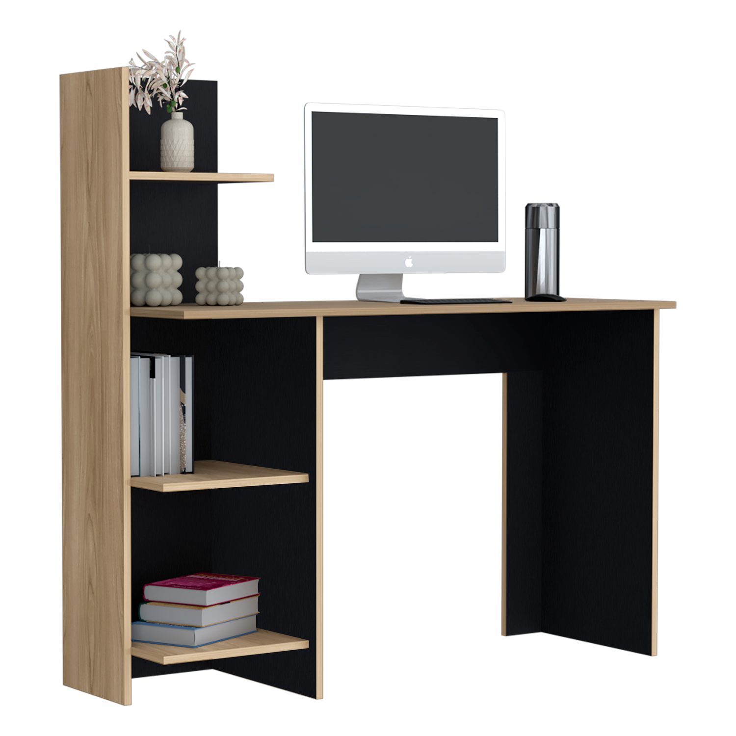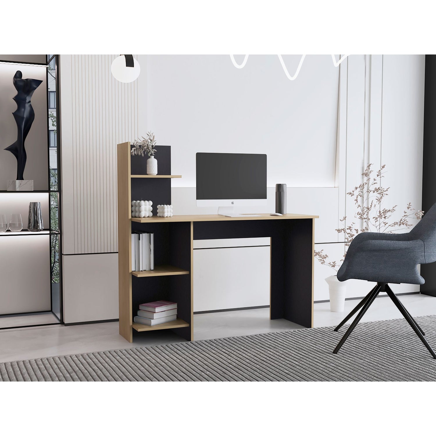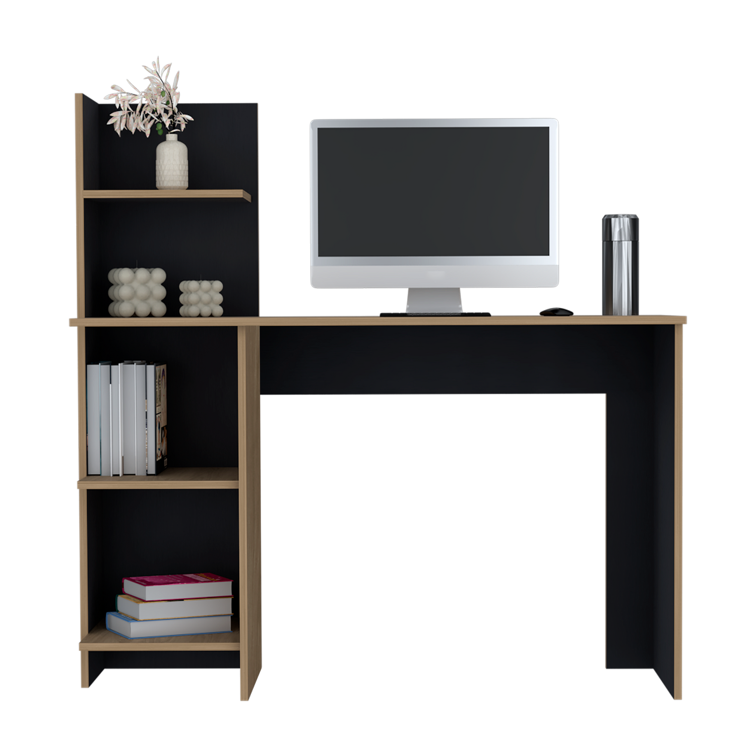 Escritorio con Biblioteca Vilna Fresno Europeo y Wengue 120x120.6cm sin Cajones