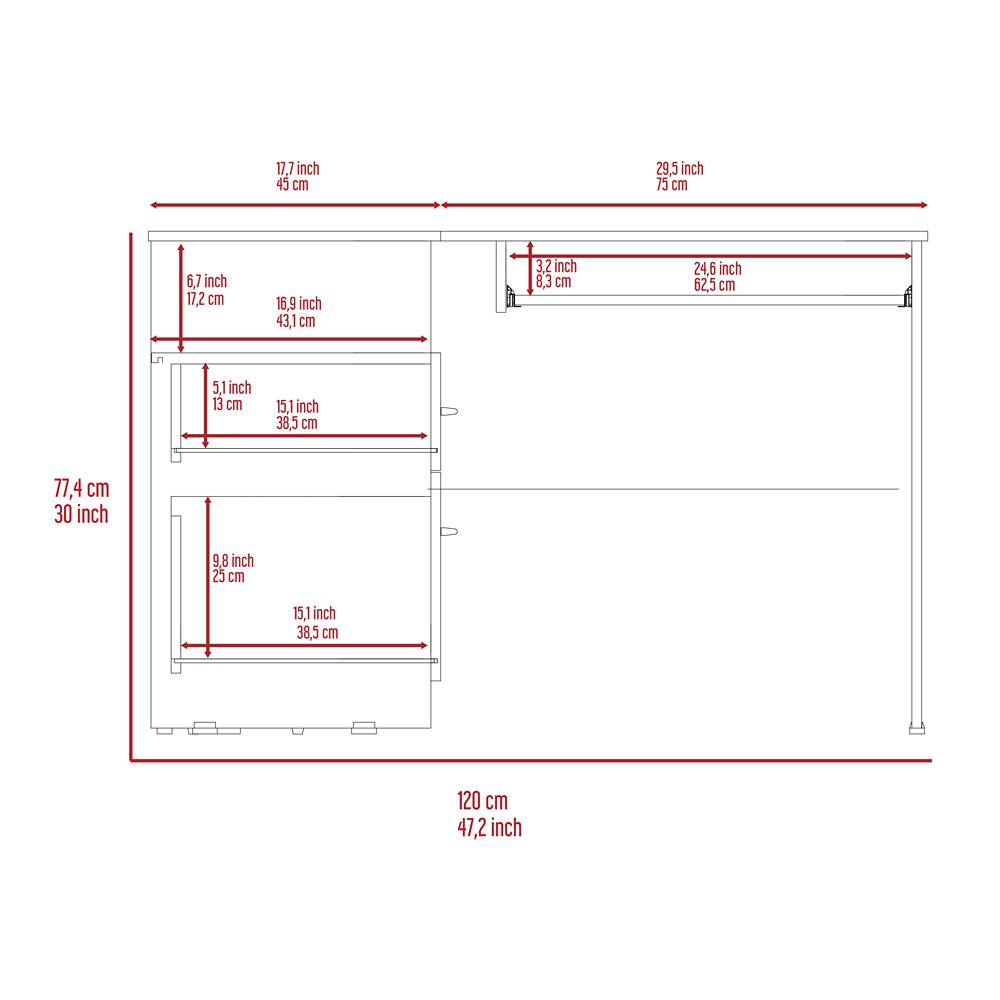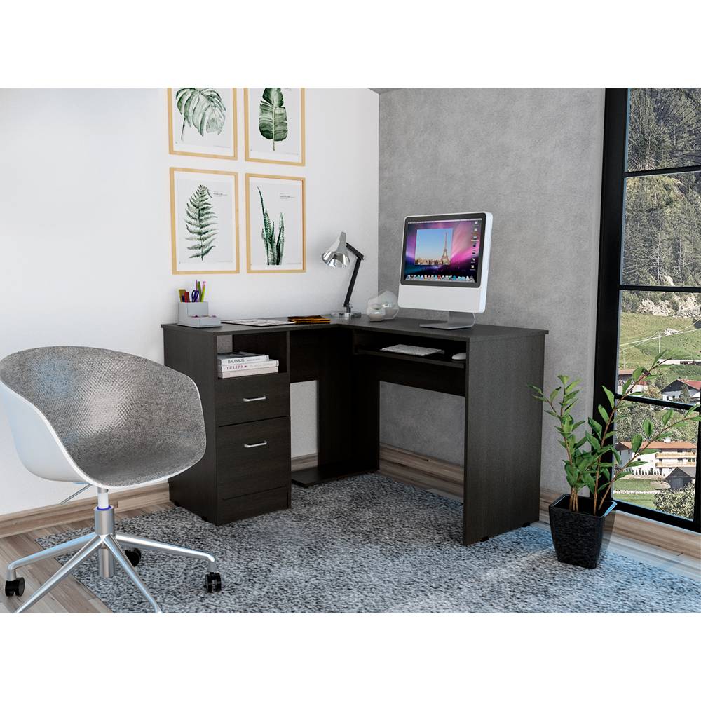 Escritorio en L Mix Wengue 120.1x77.2cm Con Dos Cajones y con Organizador de Libros