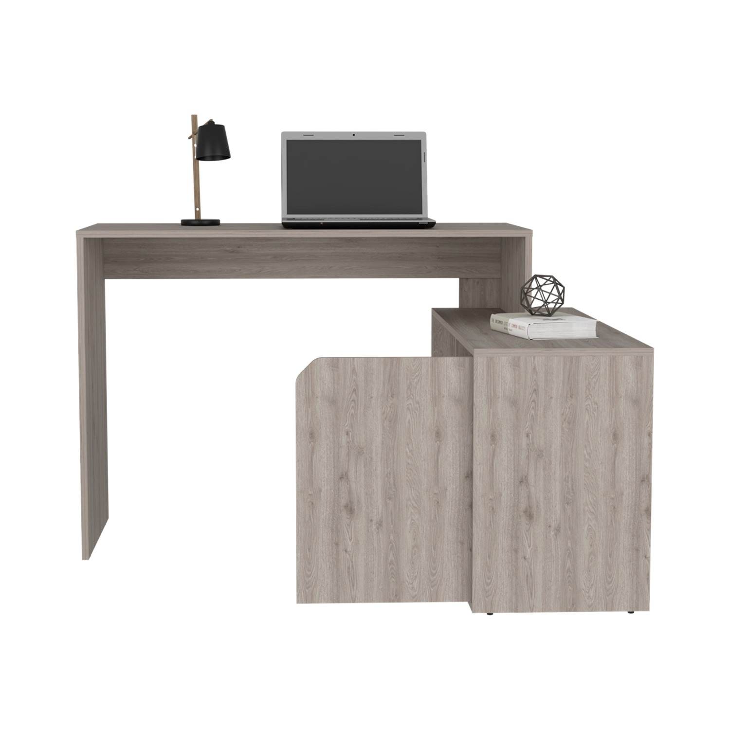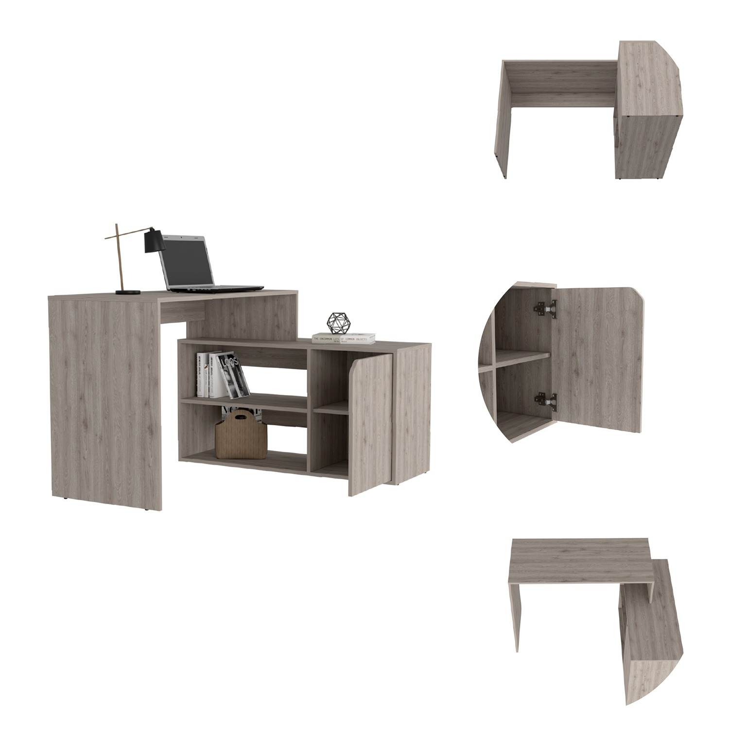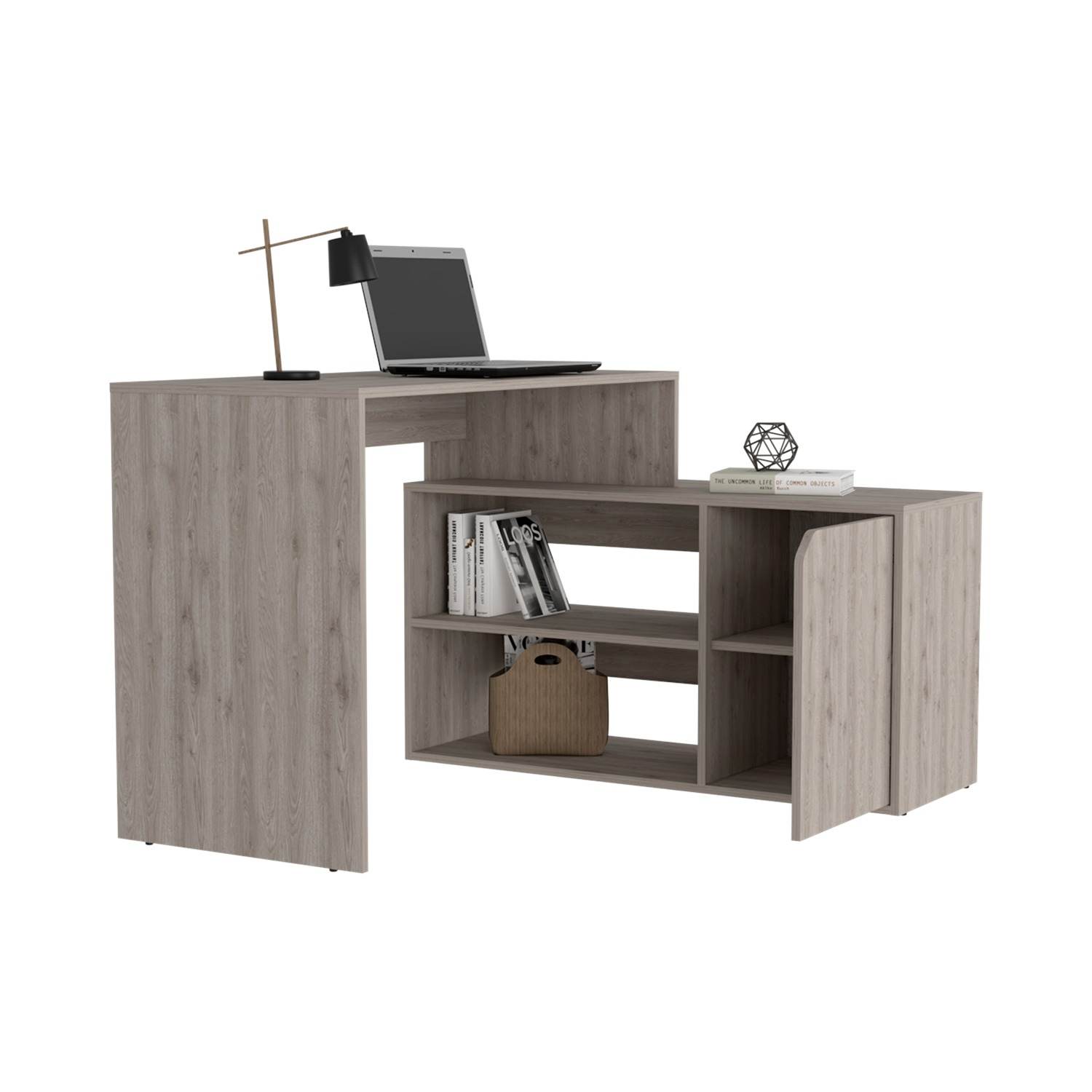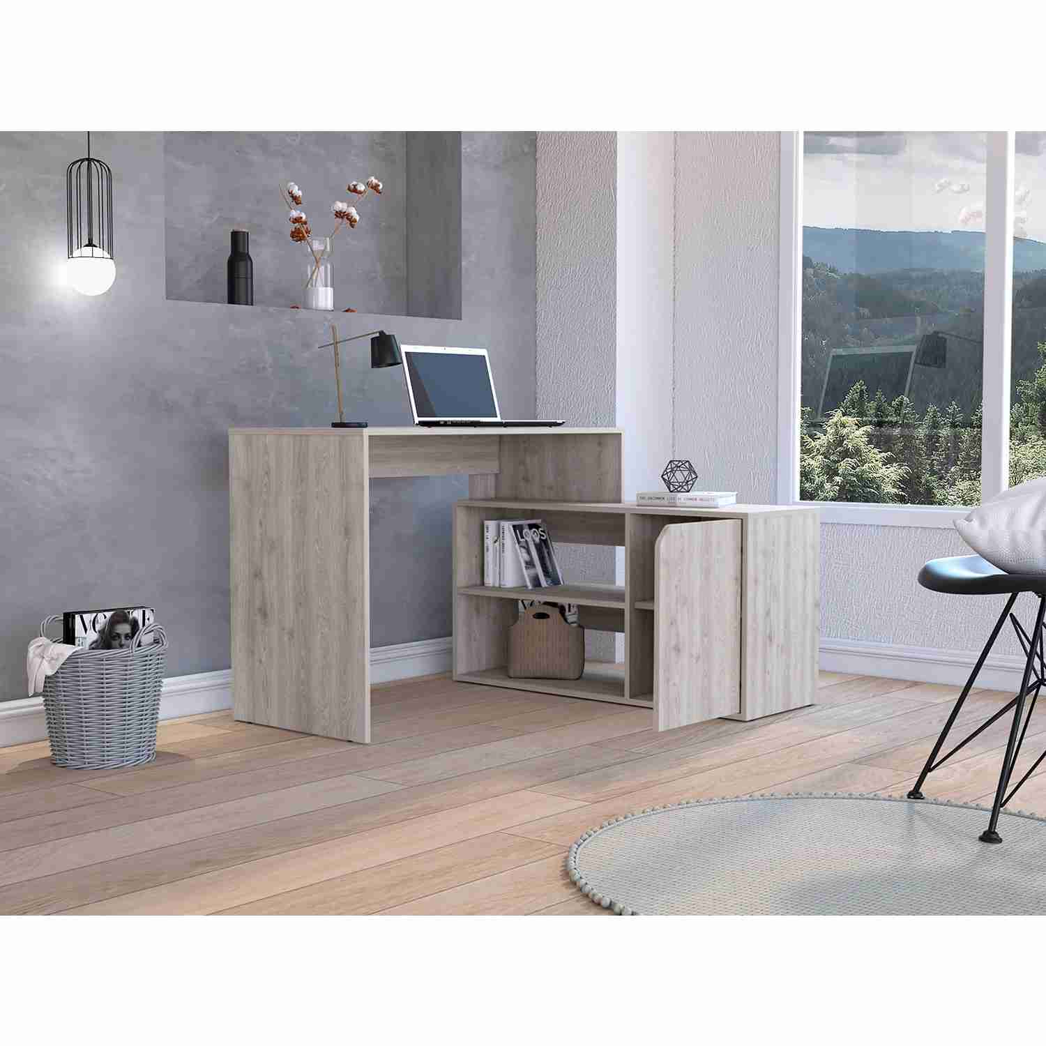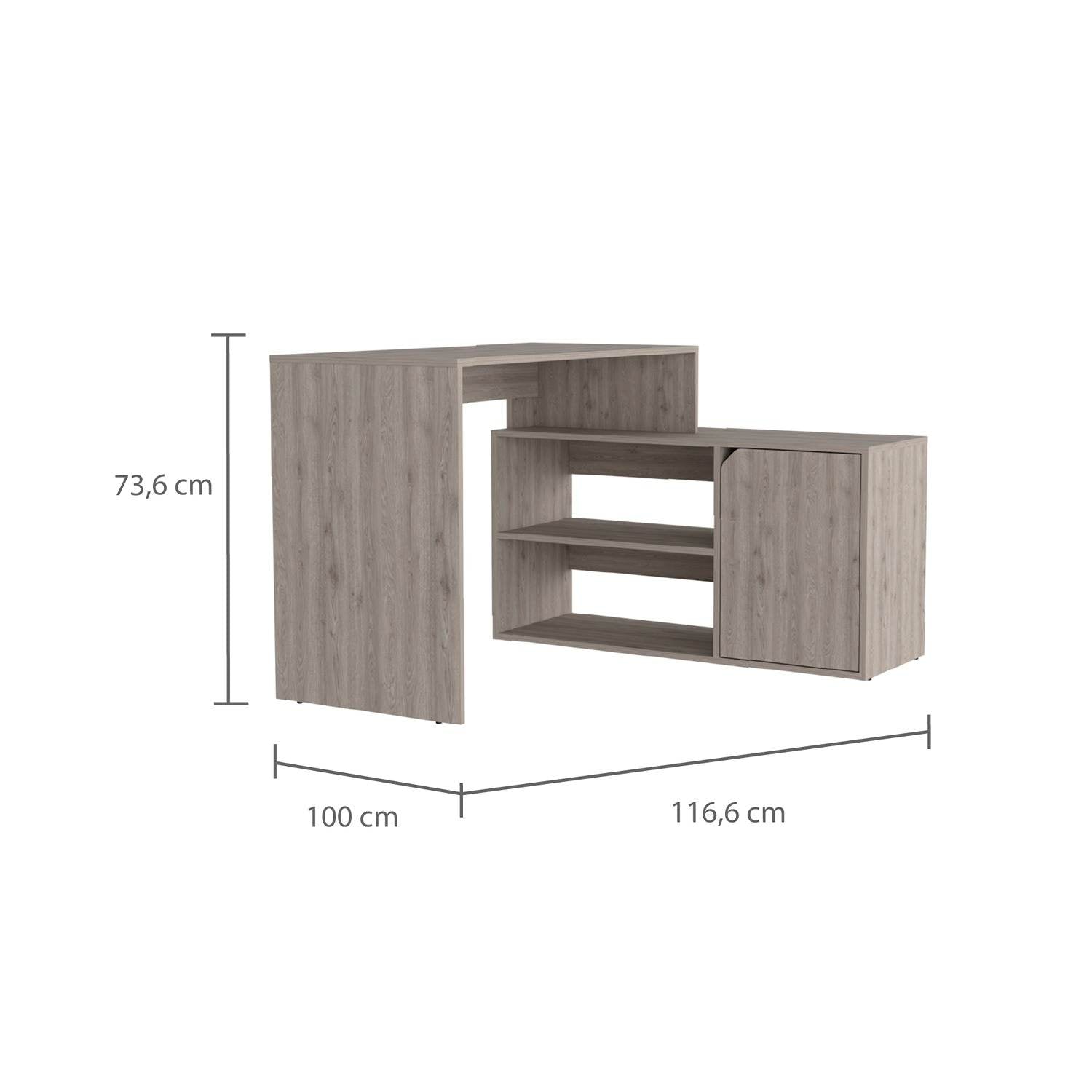 Escritorio en L Rennes Ceniza 117 cm con Dos Entrepaños y Una Puerta