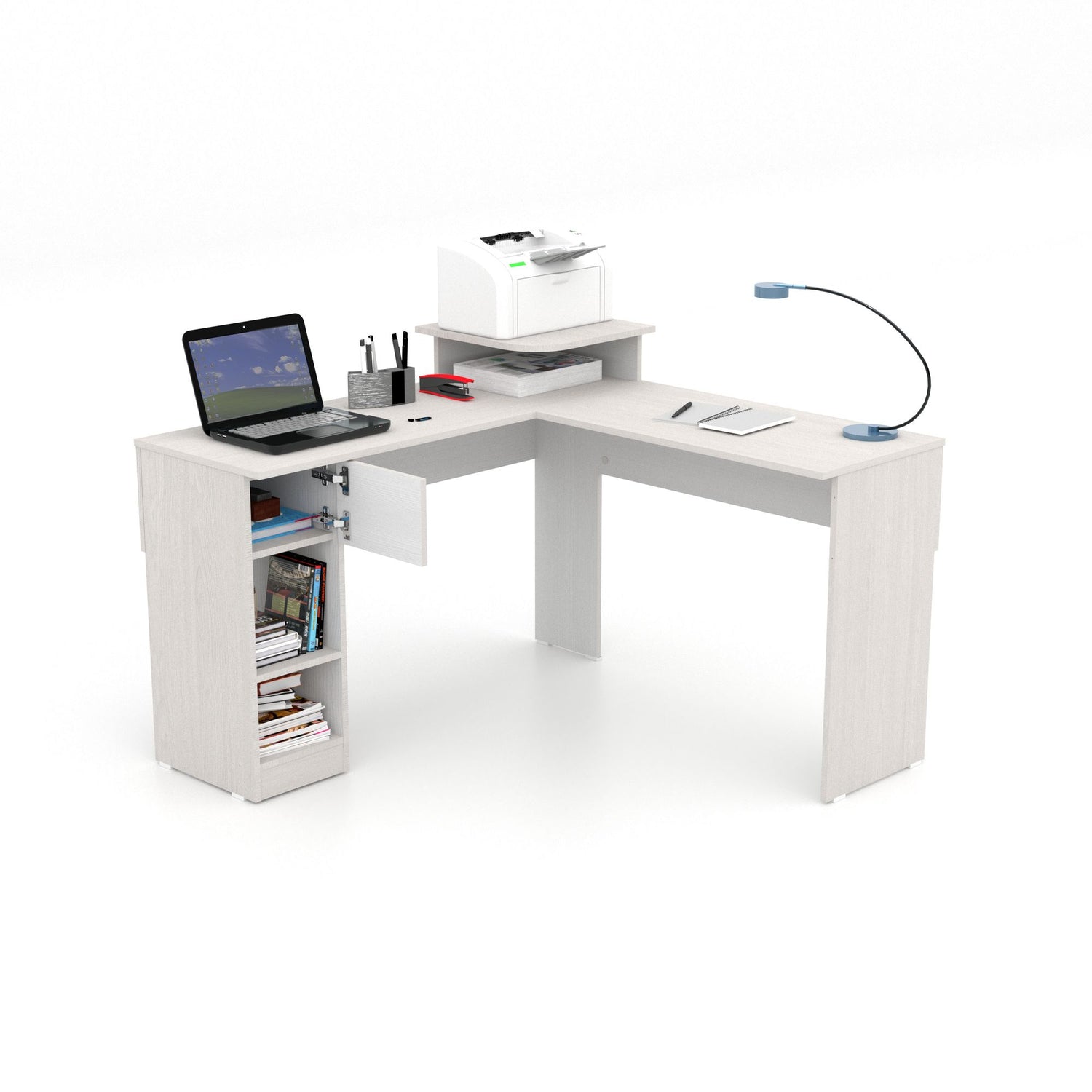 Escritorio en L Tiby Niebla 122x73cm con Un Cajón