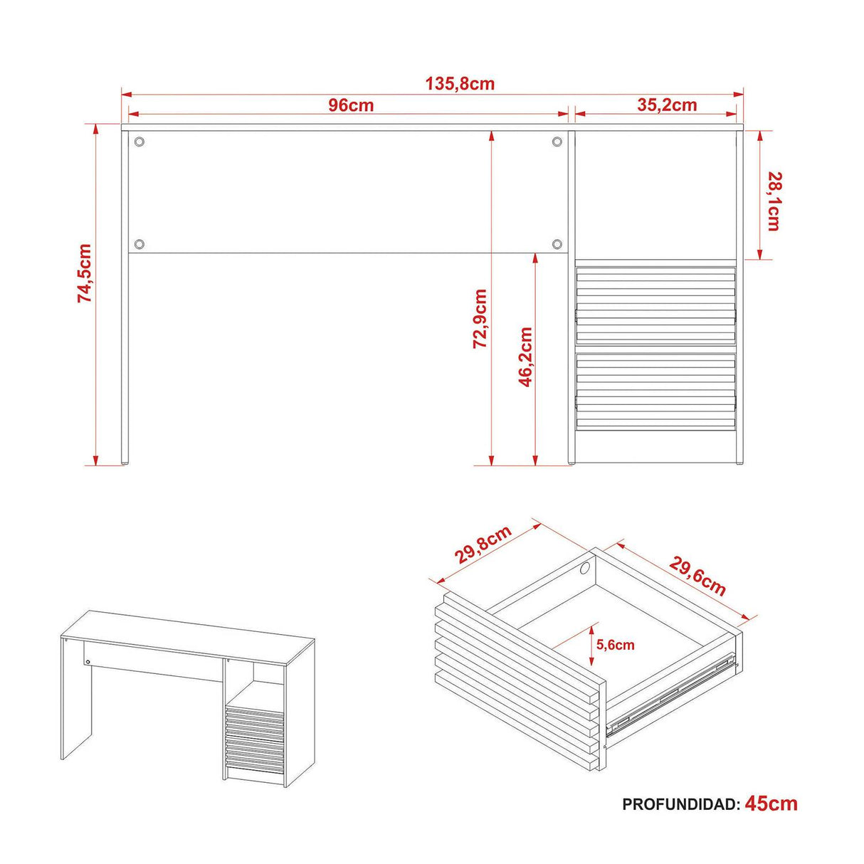 Escritorio Estrella Negro y Almendra 135.8x45cm con Dos Cajoes