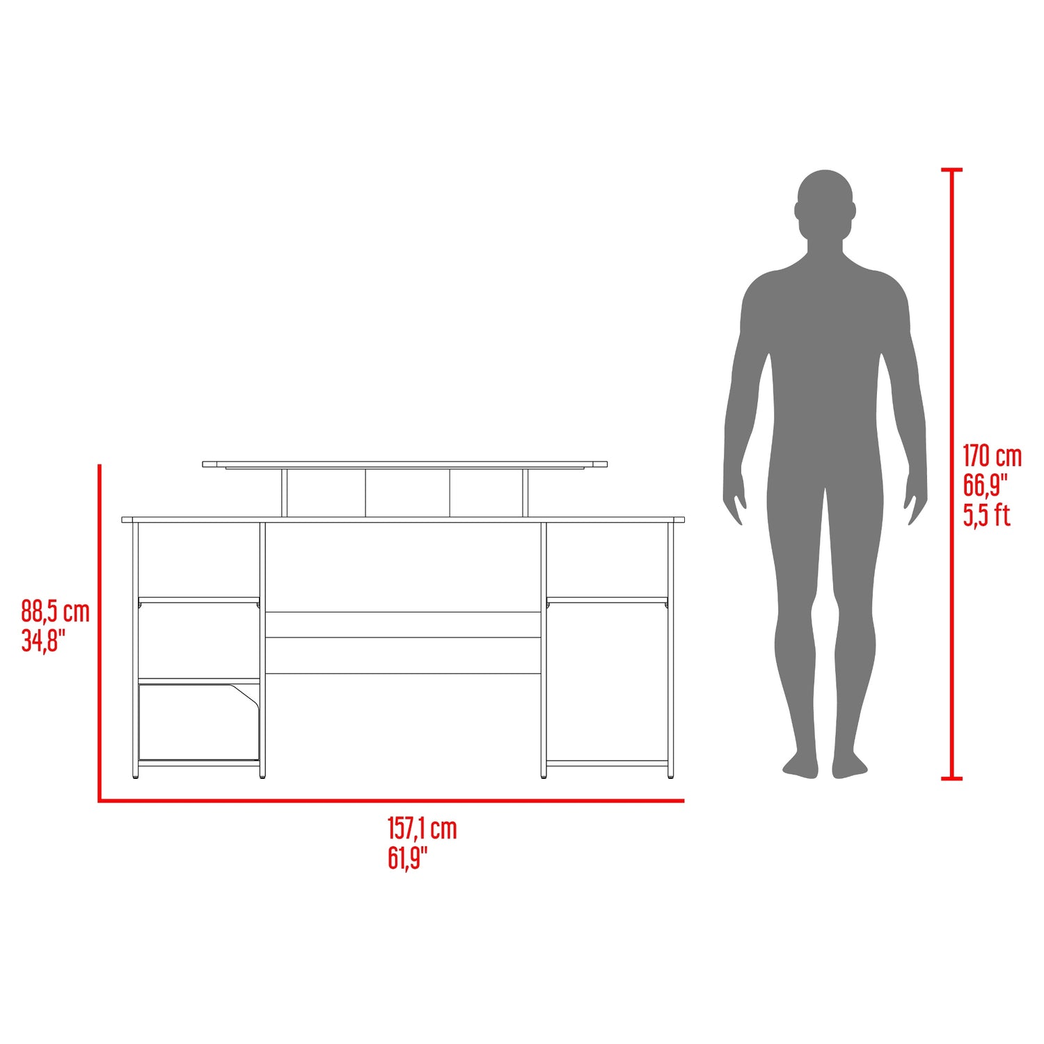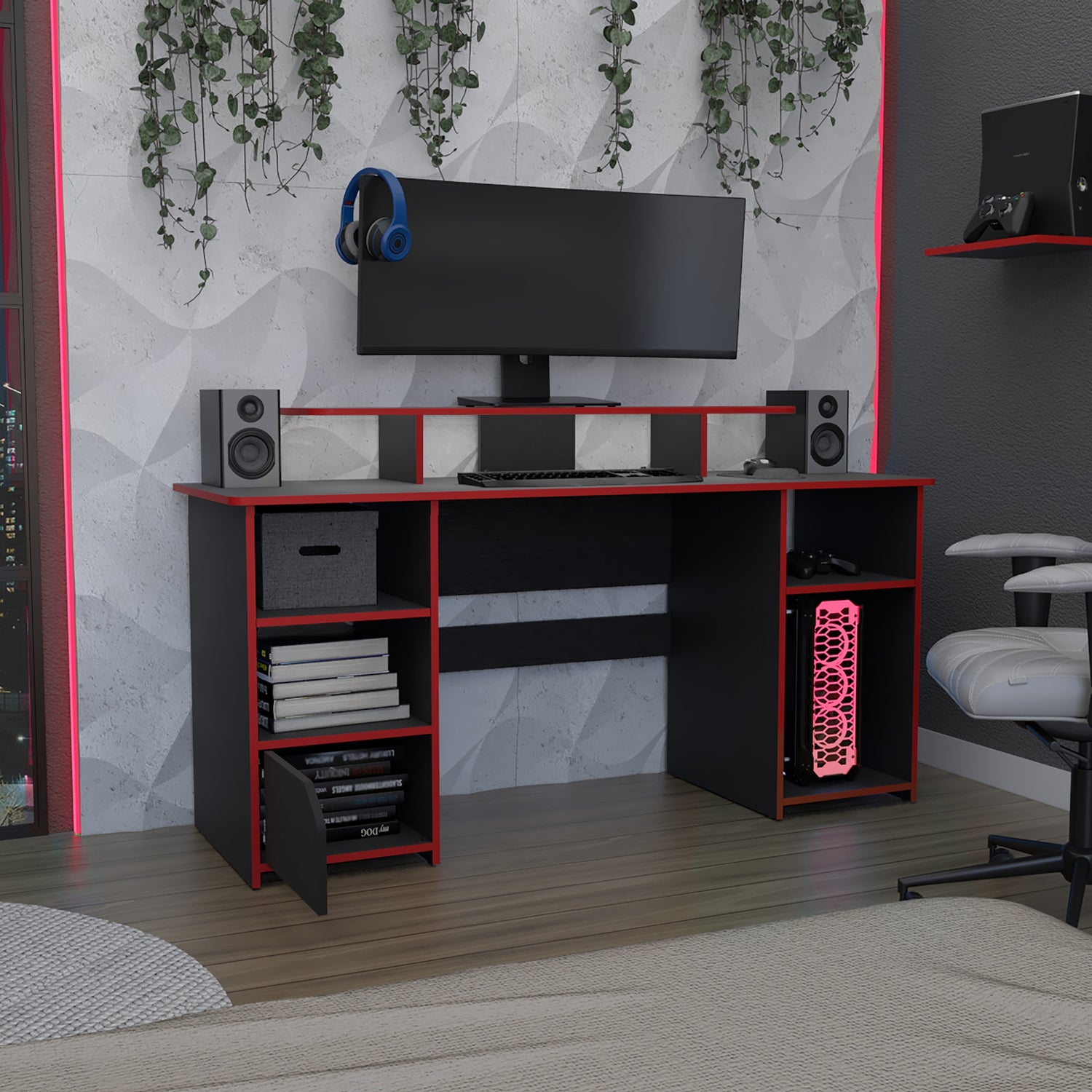 Escritorio Gamer Keria Wengue y Rojo 157.1x88.5cm Sin Cajones
