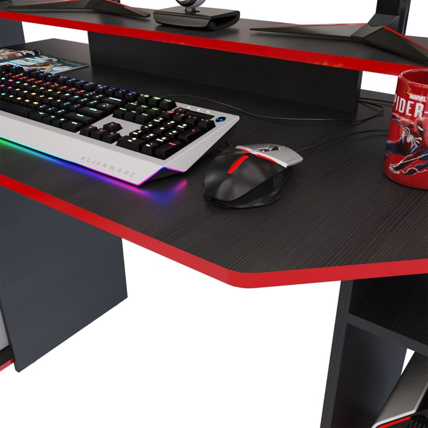 Escritorio Gamer Lax 150.2x88cm Wengue Rojo Moderno
