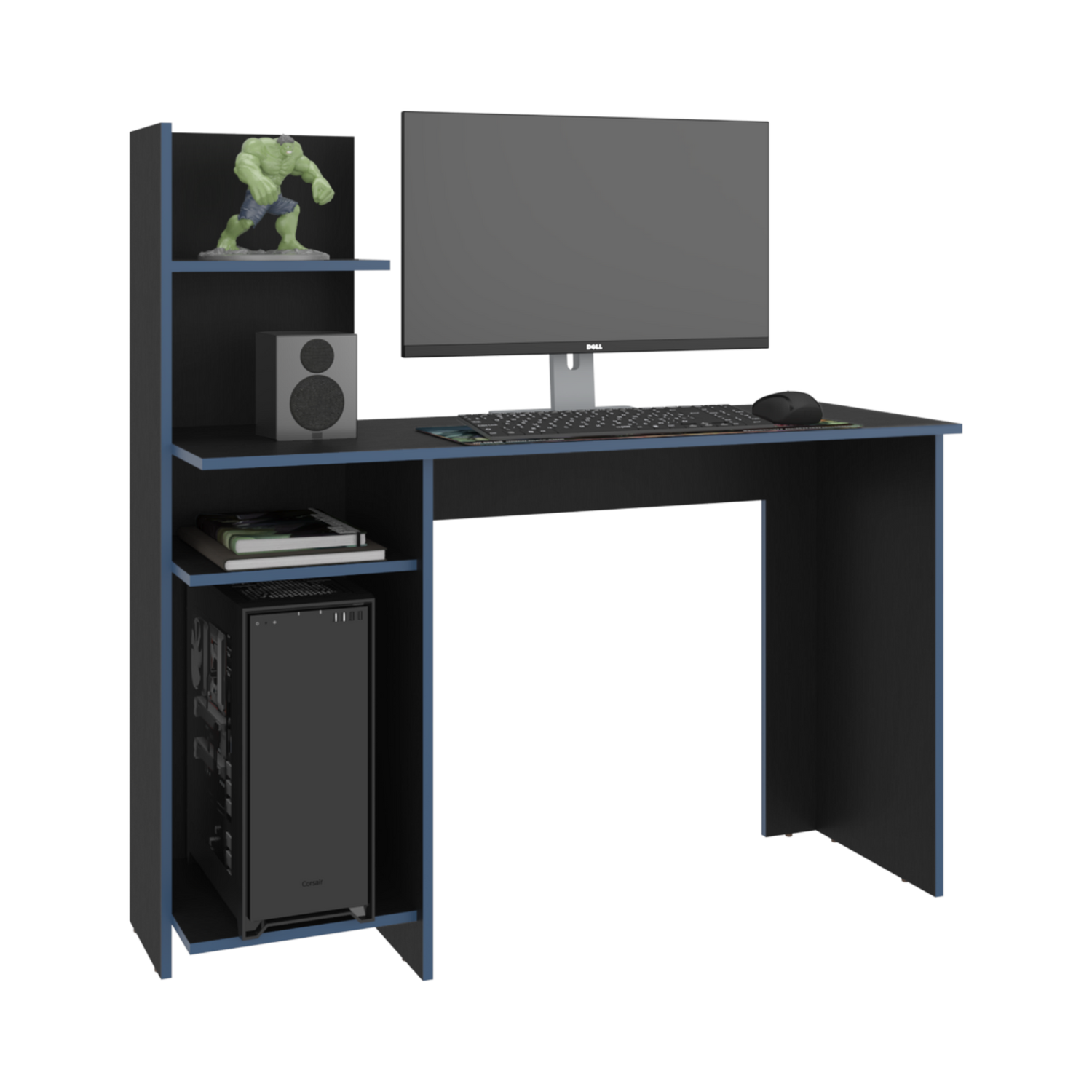 Escritorio Gamer Vilna Wengue y Azul 120x120.6cm sin Cajones
