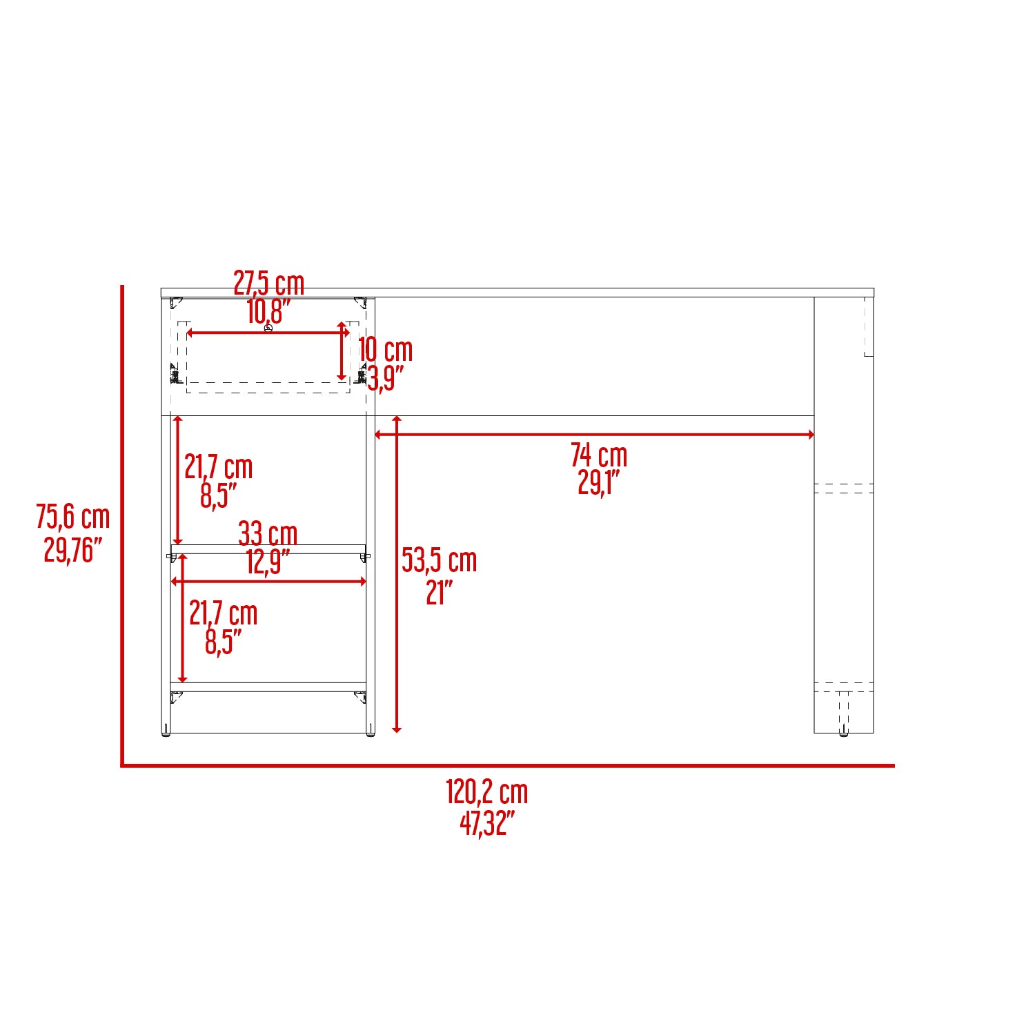Escritorio Home Compacto Ceniza 47.3x120.2x75.6cm 1 Cajón