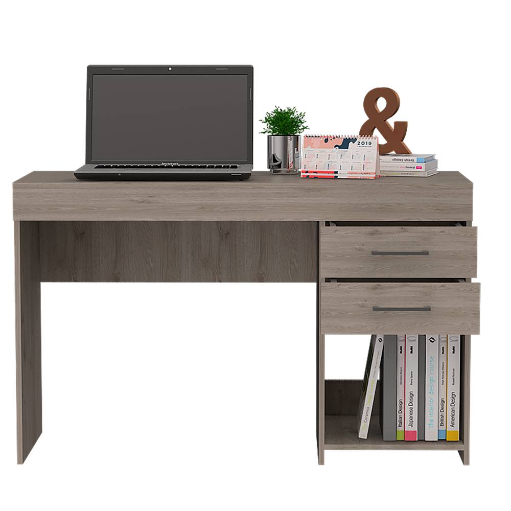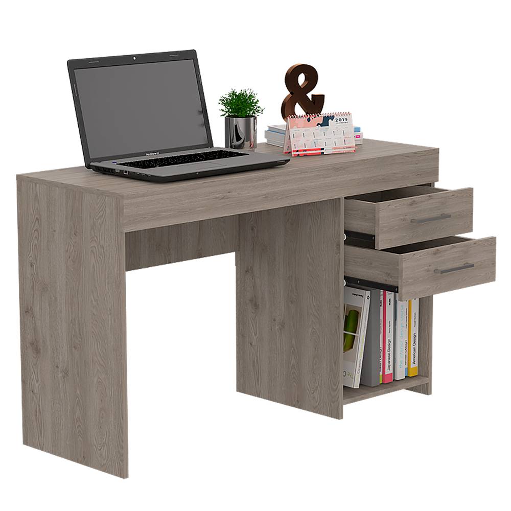 Escritorio Ibare Z Ceniza 120x75cm Con Dos Cajones y con Organizador de Libros
