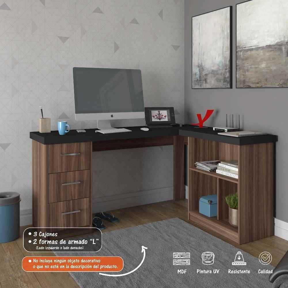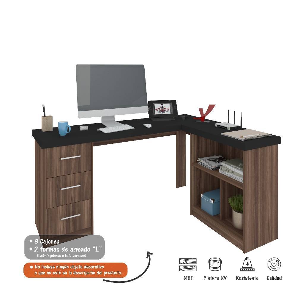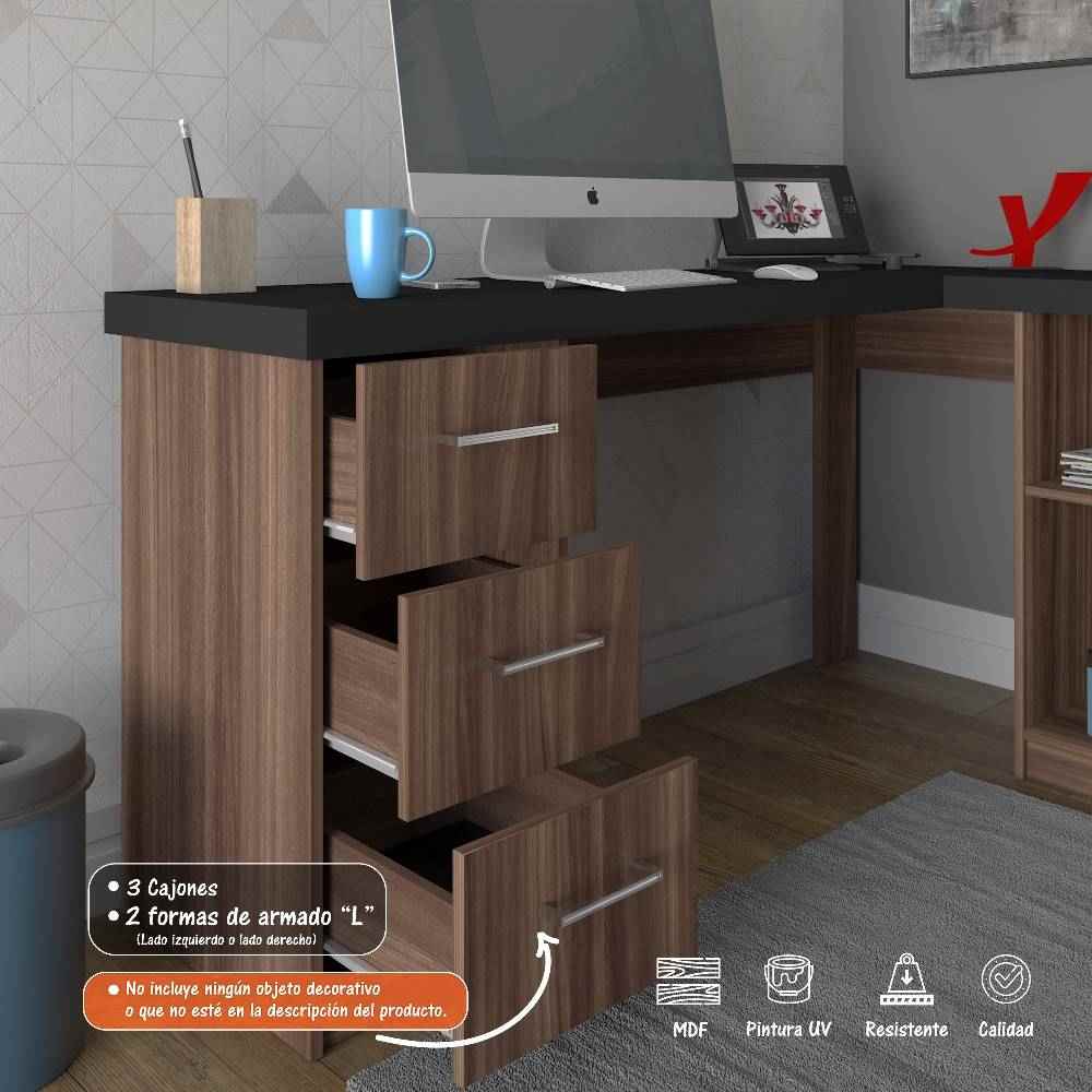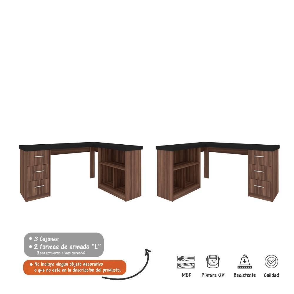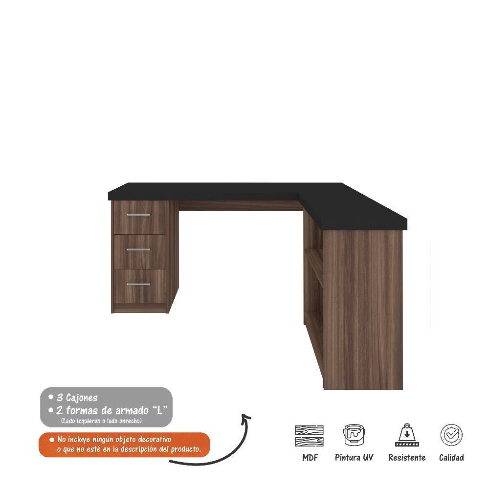 Escritorio en L Mali Habano 154 cm con Cajones y Entrepaño