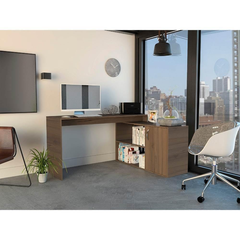 Escritorio en L Axis Cafe Expreso 151 cm con Puerta y Entrepaños