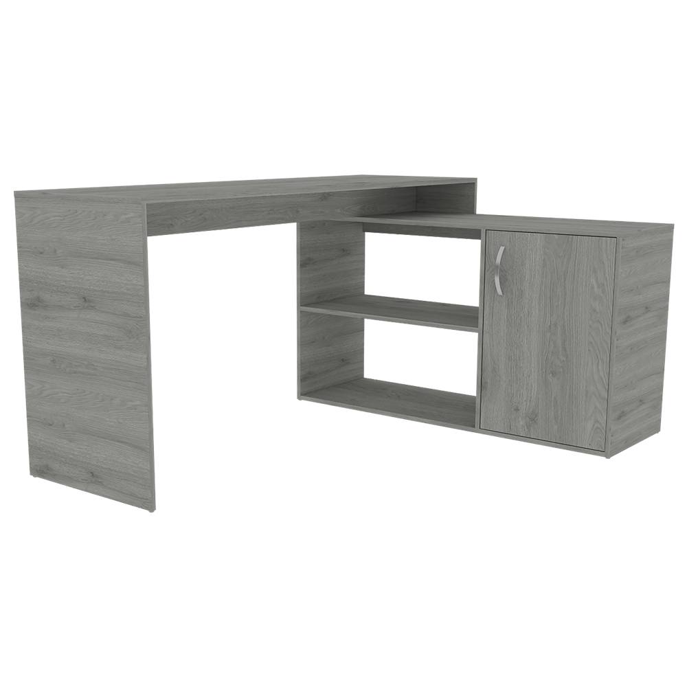 Escritorio en L Mega Ceniza 151.5x76.5cm sin Cajones y con Organizador de Libros