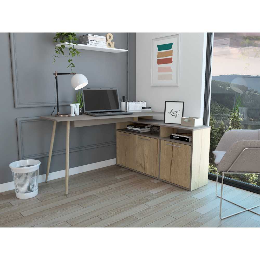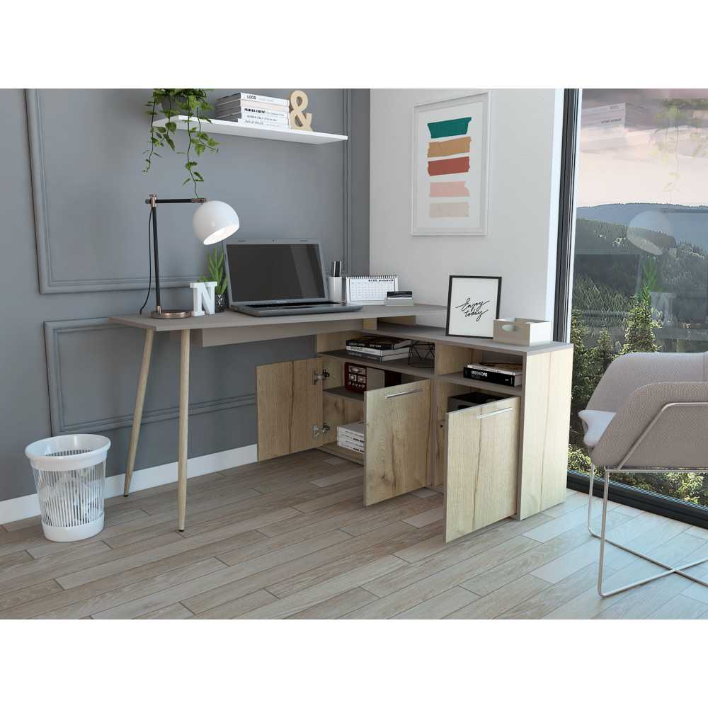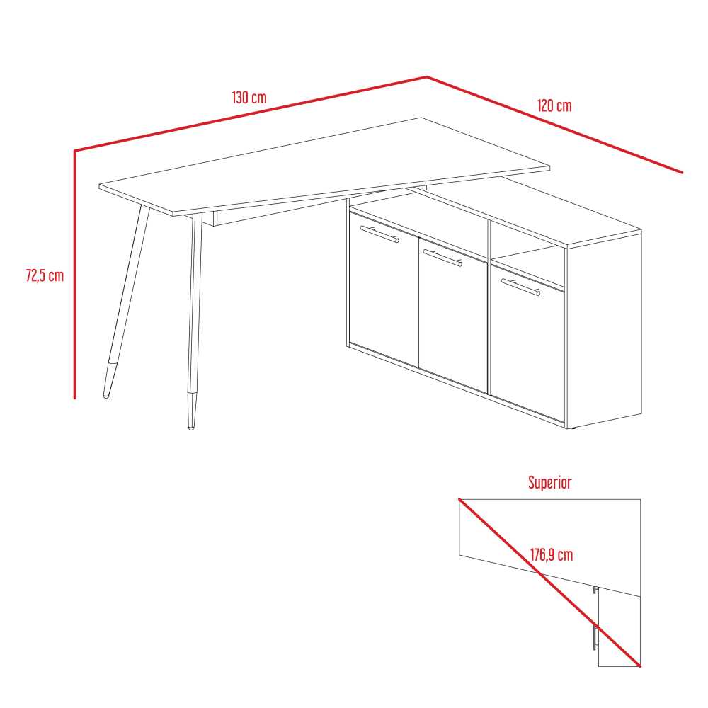 Escritorio en L Obregon Duna 130 cm con Puertas y Entrepaños