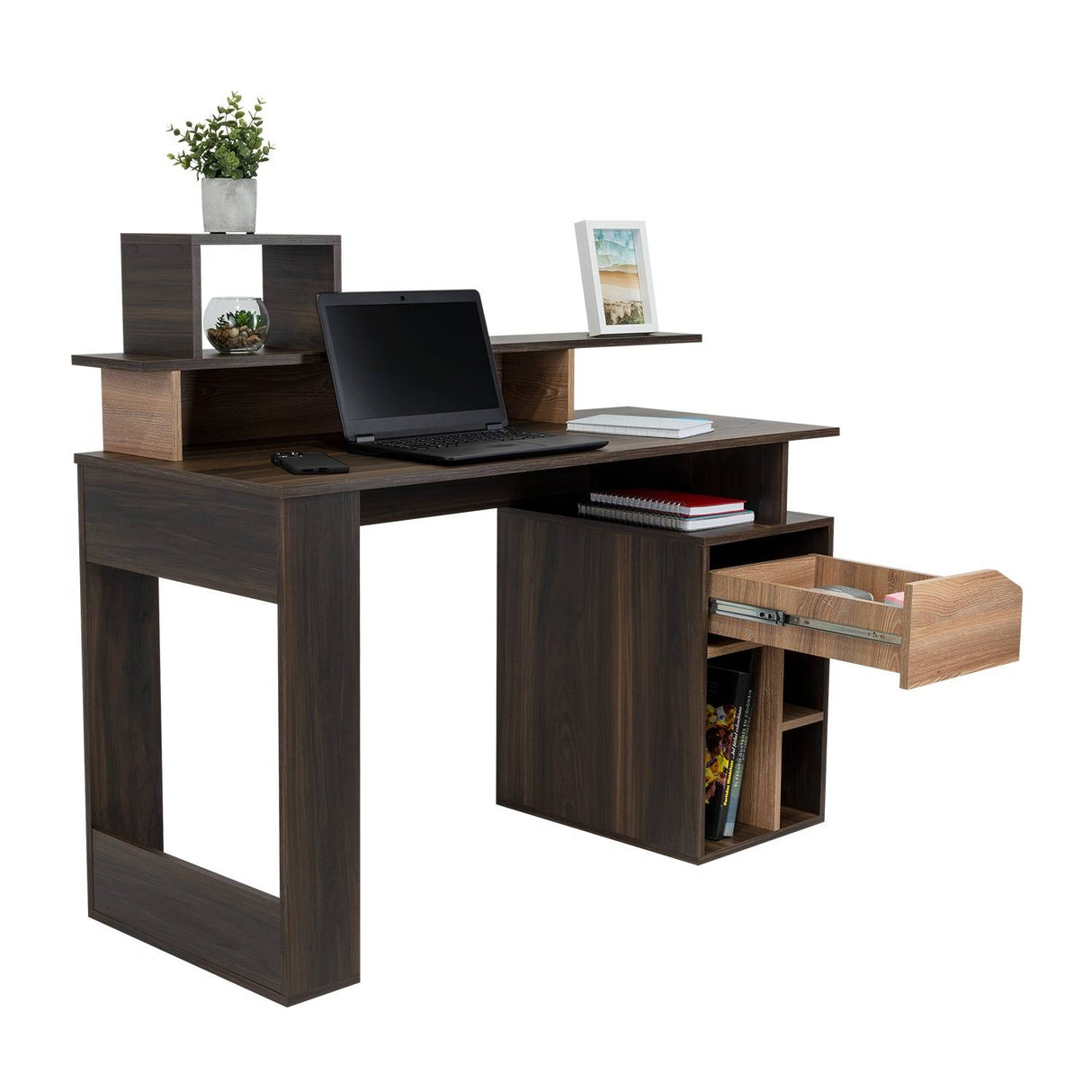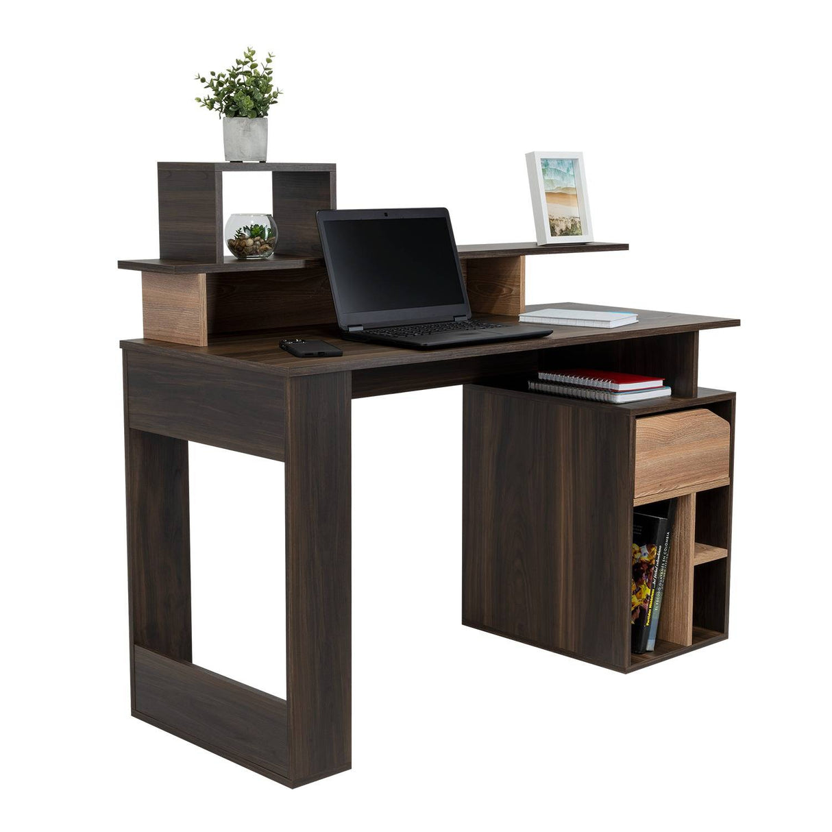 Escritorio Office Habano 120x103.5cm Con Un Cajón y con Organizador de Libros