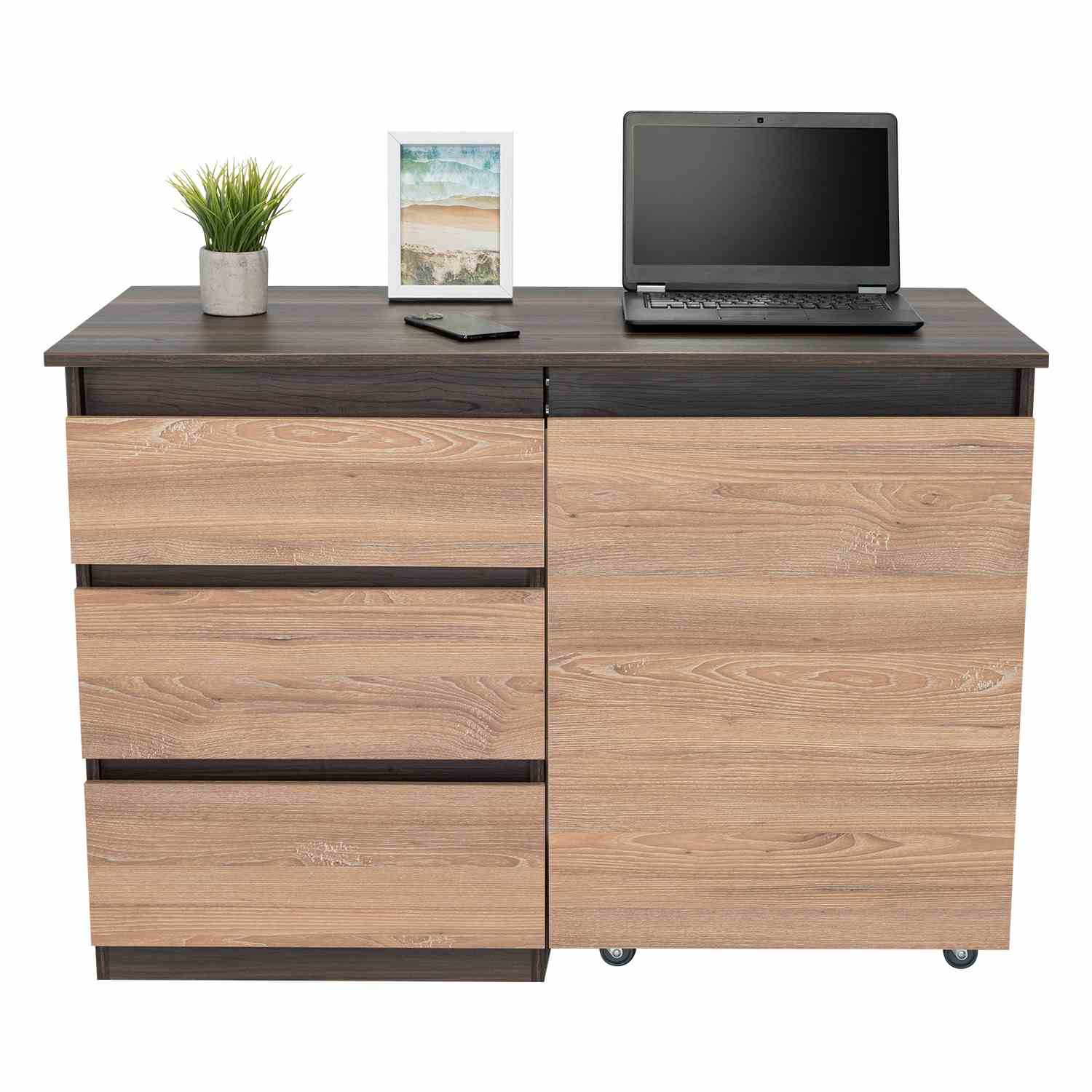 Escritorio Transformable Office Habano 107x73cm Con Tres Cajones