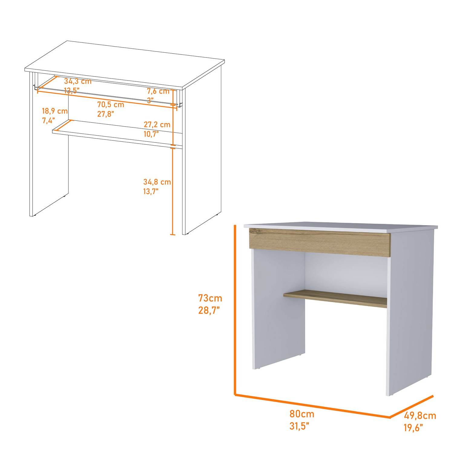 Escritorio Ohio Blanco 80x73cm Con Un Cajón