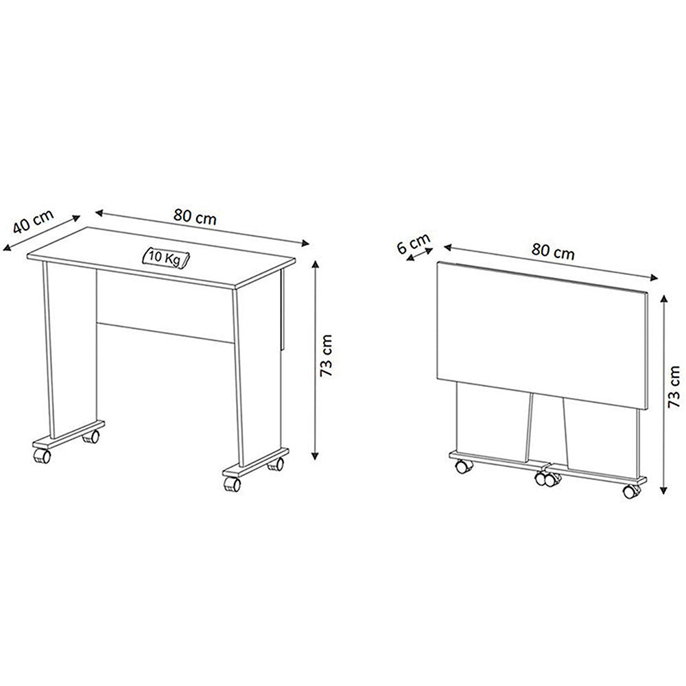 El escritorio plegable Chicago se caracteriza por tener un sistema que le permite doblarse para ser guardado fácilmente. Es práctico porque puede ser habilitado como mesa de estudio, auxiliar o de comidas. Además, sus cuatro ruedas permiten un deslizamiento fácil y suave. Ha sido producido con aglomerado de madera y su acabado en melamina garantiza mayor resistencia y durabilidad. Con sus productos, Muebles 2020 quiere generar ideas para darle una nueva vida a los hogares. Cada mueble es una mezcla de creatividad, diseño, funcionalidad y mucha dedicación. Ancho: 80 cm Alto: 73 cm Prof: 40 cm Peso neto: 10,55 kg Peso recomendado: 10 kg Estructura: MDP 15mm / fibra 3mm (respaldo) Incluye: - Cuatro (4) ruedas - Kit de herrajes - Manual de armado No incluye: - Accesorios La garantía aplica para defectos de fabricación por 1 año. Producto ambientado, no incluye accesorios. El color de la imagen es de referencia y puede tener variaciones en el producto real. Se recomienda que el producto sea armado por un experto, o en su defecto que se usen las herramientas adecuadas. Si el cliente decide hacerlo por cuenta propia y genera a la unidad un daño, al hacer caso omiso a las instrucciones señaladas en el manual de armado, deberá él cubrir el costo de reparación.