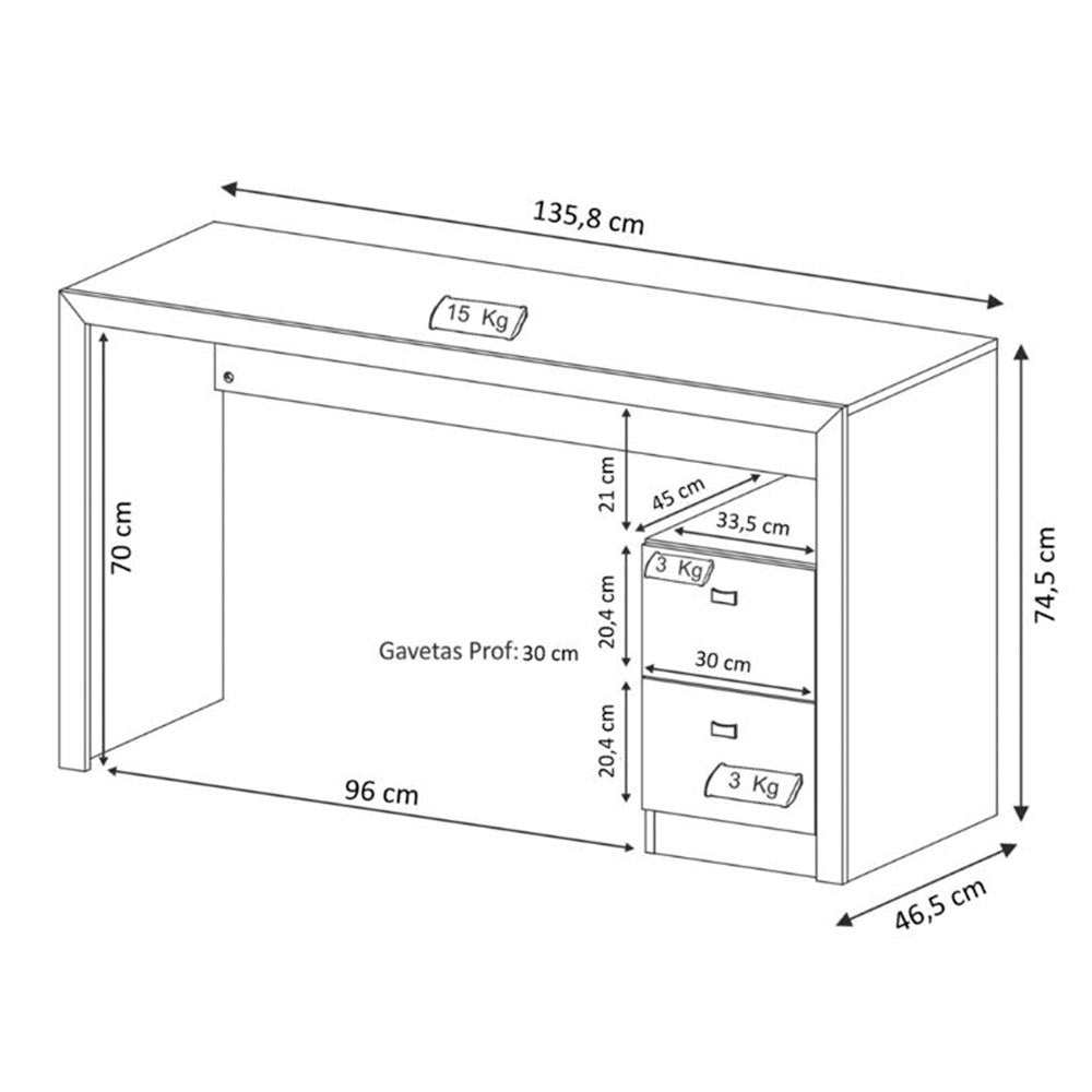 El Escritorio Santorini cuenta con dos cajones en los que se pueden organizar diferentes implementos de trabajo. Es un mueble que hará cualquier espacio de trabajo un lugar cómodo y productivo. Ha sido producido con aglomerado de madera y su acabado en BP garantiza mayor resistencia y durabilidad. Con sus productos, Muebles 2020 quiere generar ideas para darle una nueva vida a los hogares. Cada mueble es una mezcla de creatividad, diseño, funcionalidad y mucha dedicación. Largo: 135,8 cm Alto: 74,5 cm Prof: 46,5 cm Peso neto: 26,20 kg Peso recomendado 15 Kg en la tapa y 3 Kg en cada cajón Estructura MDP 15mm / fibra 3mm (respaldo) Incluye: - Dos (2) cajones, manijas en PVC cromado y rieles metálicos - Kit de herrajes - Manual de armado No incluye: - Accesorios - La garantía aplica para defectos de fabricación por 1 año. - Producto ambientado, no incluye accesorios. - El color de la imagen es de referencia y puede tener variaciones en el producto real. - Se recomienda que el producto sea armado por un experto, o en su defecto que se usen las herramientas adecuadas, según lo establecido en el manual de armado. - Si el cliente decide armar él mismo el mueble, en caso de daño por una instalación indebida, o no tomando en cuenta las instrucciones señaladas en el documento de instrucciones de armado, deberá cubrir el costo de reparación.