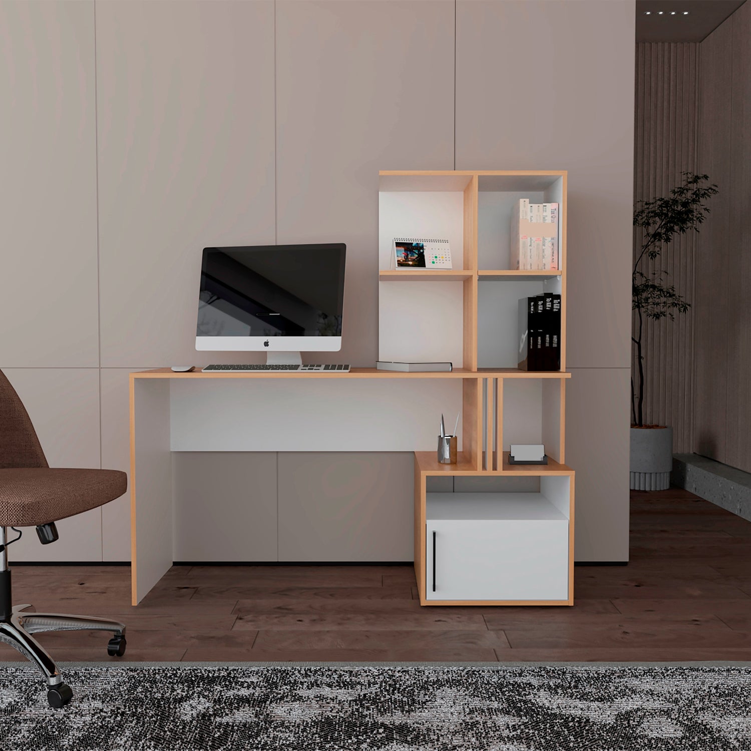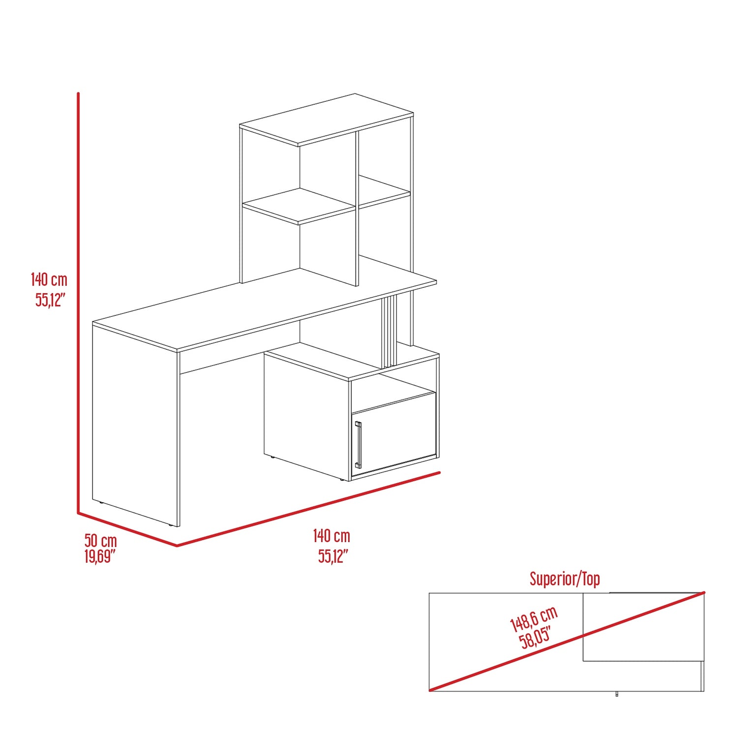 Escritorio Vance Fresno Europeo y Blanco 140x140cm Con Organizador de Libros y Archivador