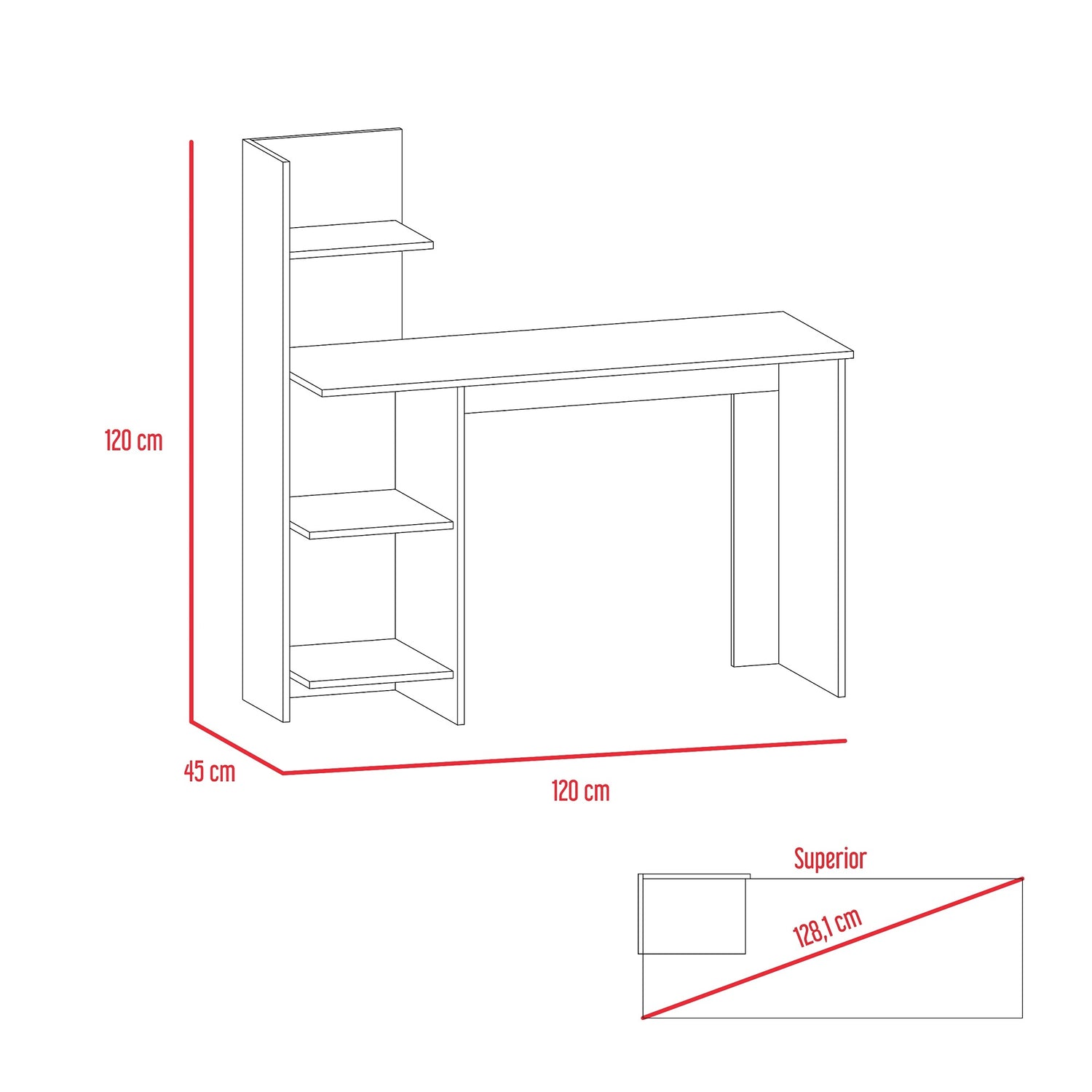 Escritorio Vilna Blanco 120x120.6cm con Organizador de Libros