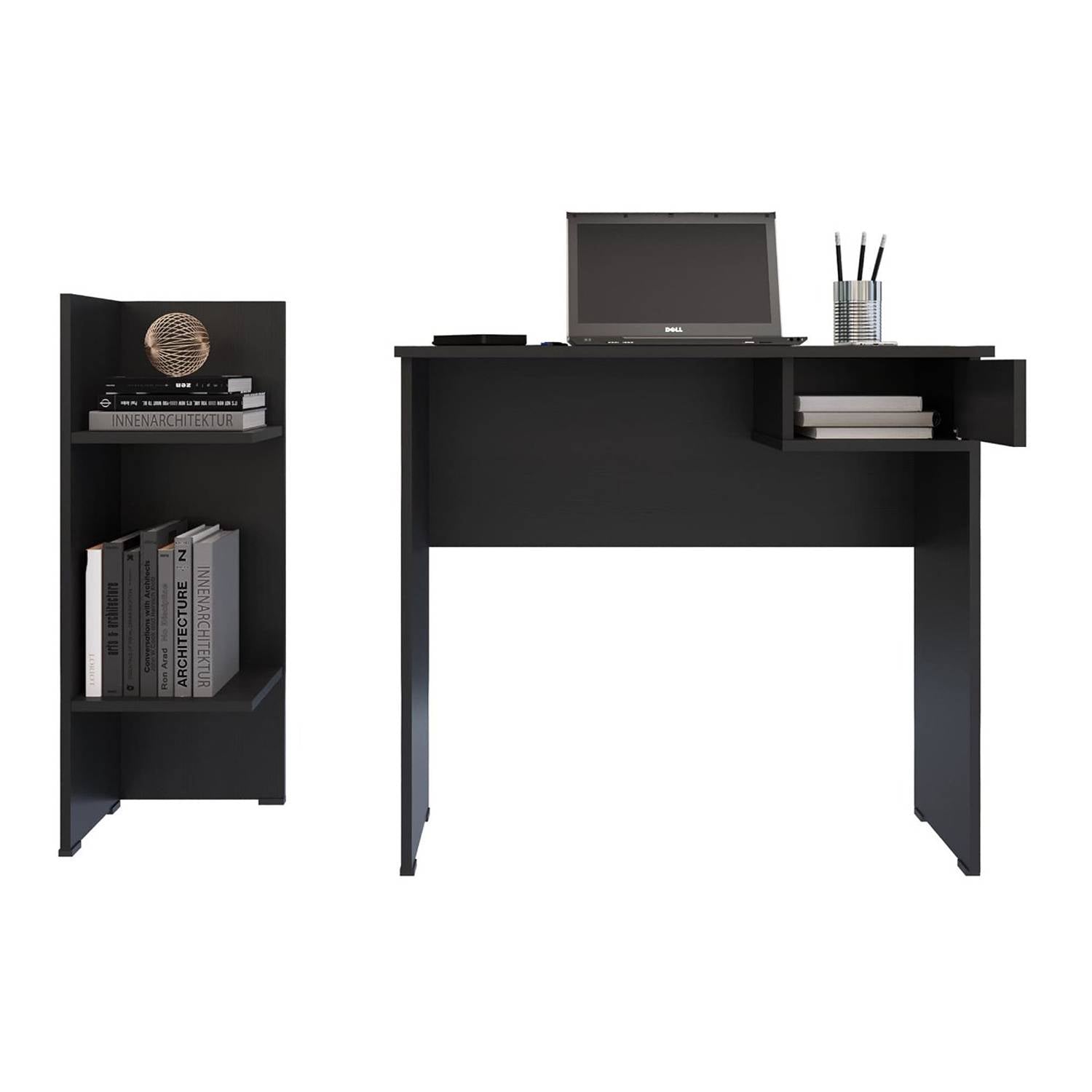 Combo Escritorio y Biblioteca Sahara Wengue 80x73cm Con Un Cajón y con Organizador de Libros