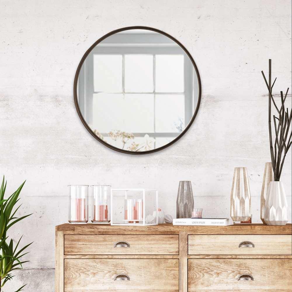 Espejo de Pared Negro 60x60cm Redondo con Marco Metalico