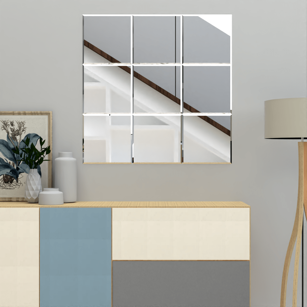 espejo cuadrado se compone de 9 piezas con bisel, ensamble a la pared con cinta doble faz