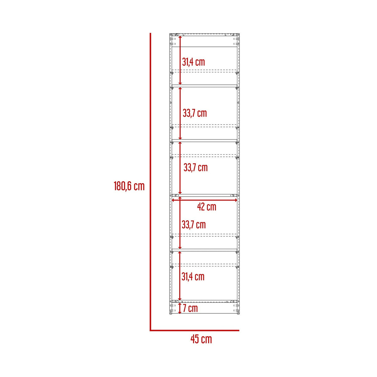 Estantería Home Blanco 45x181cm con Cinco Compartimientos